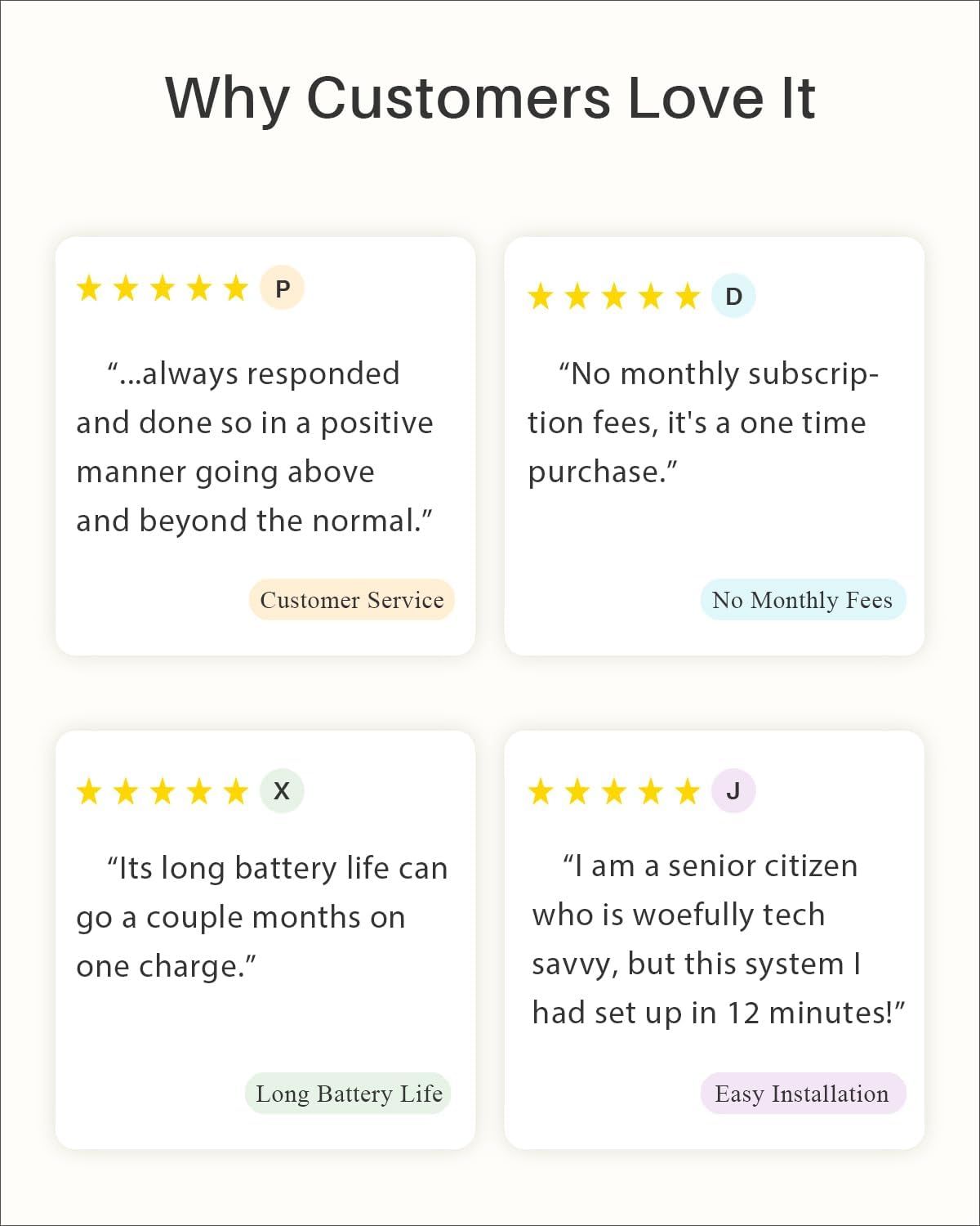 - Long-Lasting Battery - The 9600mAh high-capacity battery can last for up to 8 months on a single charge. Plus, if your home security camera is connected to the WUUK solar panel (sold separately), you won't have to worry about recharging it.