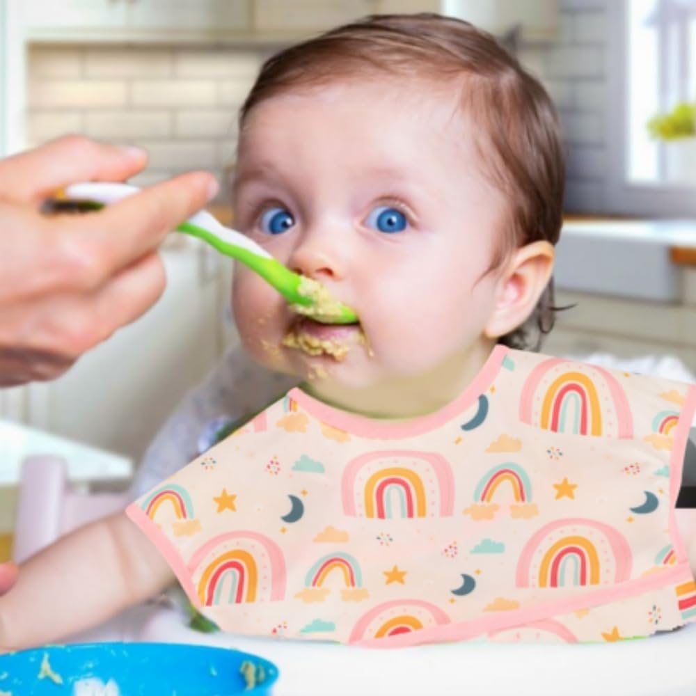 • 【LARGE POCKET BIBS】 9 cm deep 5D large pocket design can properly protect clothing and prevent food and liquids from reaching the floor.