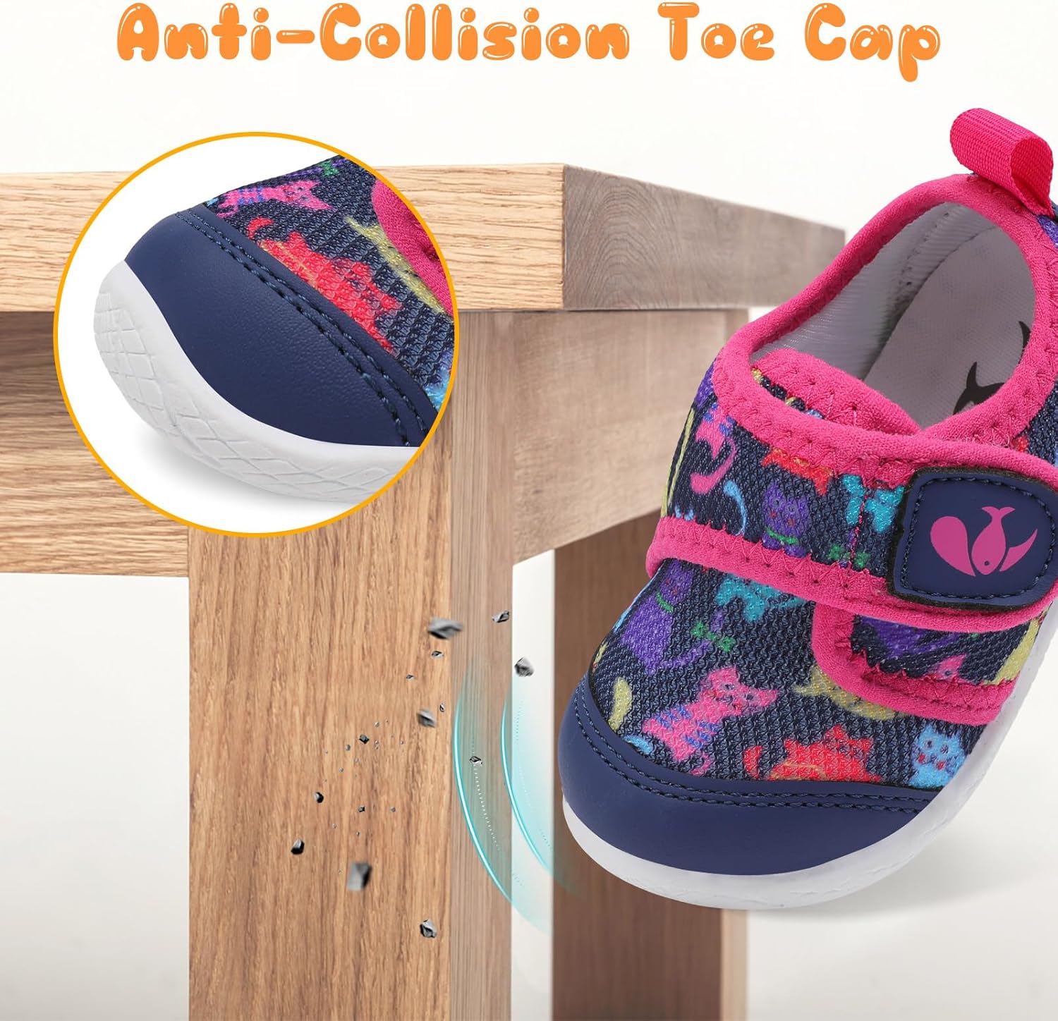 • Walking Confidently: Round toe boxes allow natural splaying of toes for balanced landing and maximum comfort, your baby will walk very confident with them.