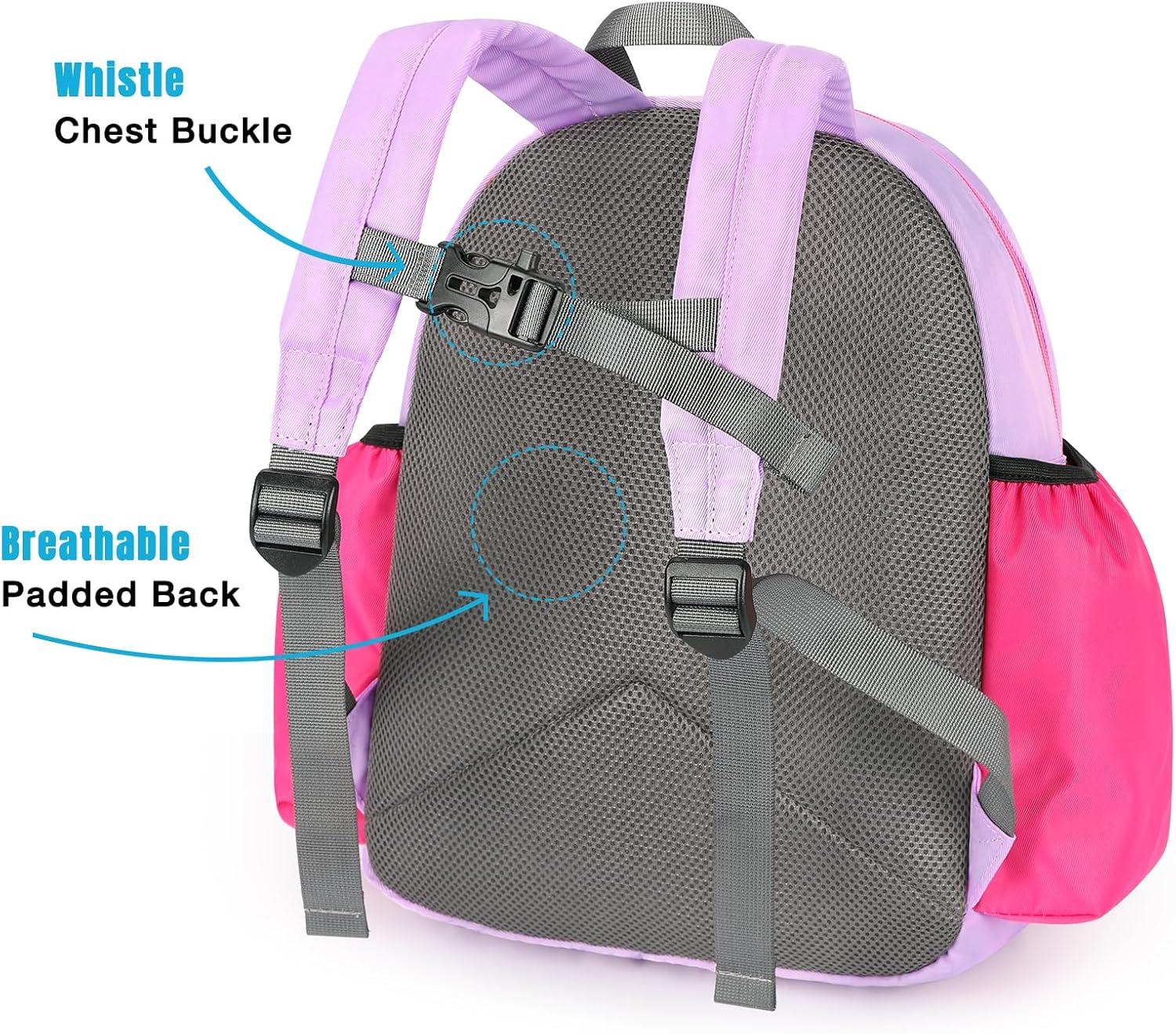 - 【COMFORT&WHISTLE FUNNY】Designed with padded shoulder straps and a ventilated back design, the kids backpack for girls provides more breathability and decompression. The chest buckle is made of a unique safety whistle design, which can not only be used as a child's daily toy but also blow for help in time of danger.