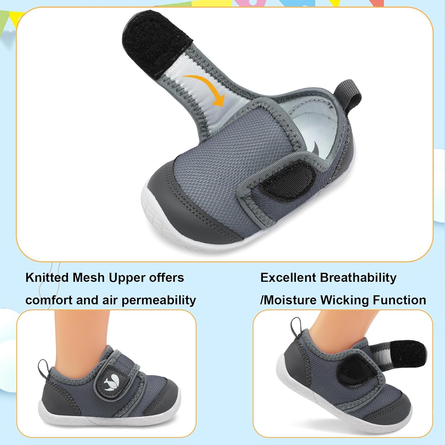 • Walking Confidently: Round toe boxes allow natural splaying of toes for balanced landing and maximum comfort, your baby will walk very confident with them.