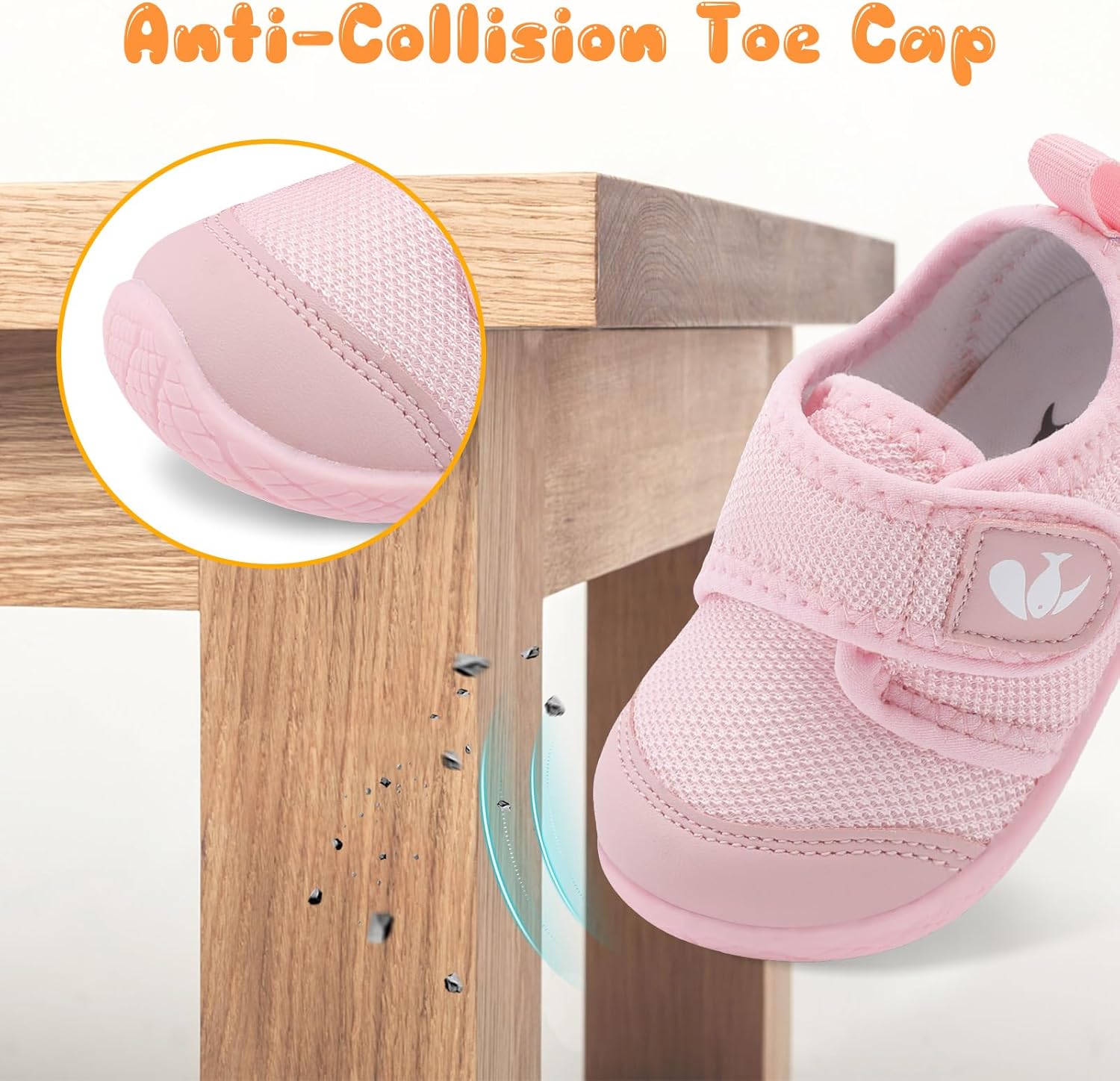 • Walking Confidently: Round toe boxes allow natural splaying of toes for balanced landing and maximum comfort, your baby will walk very confident with them.