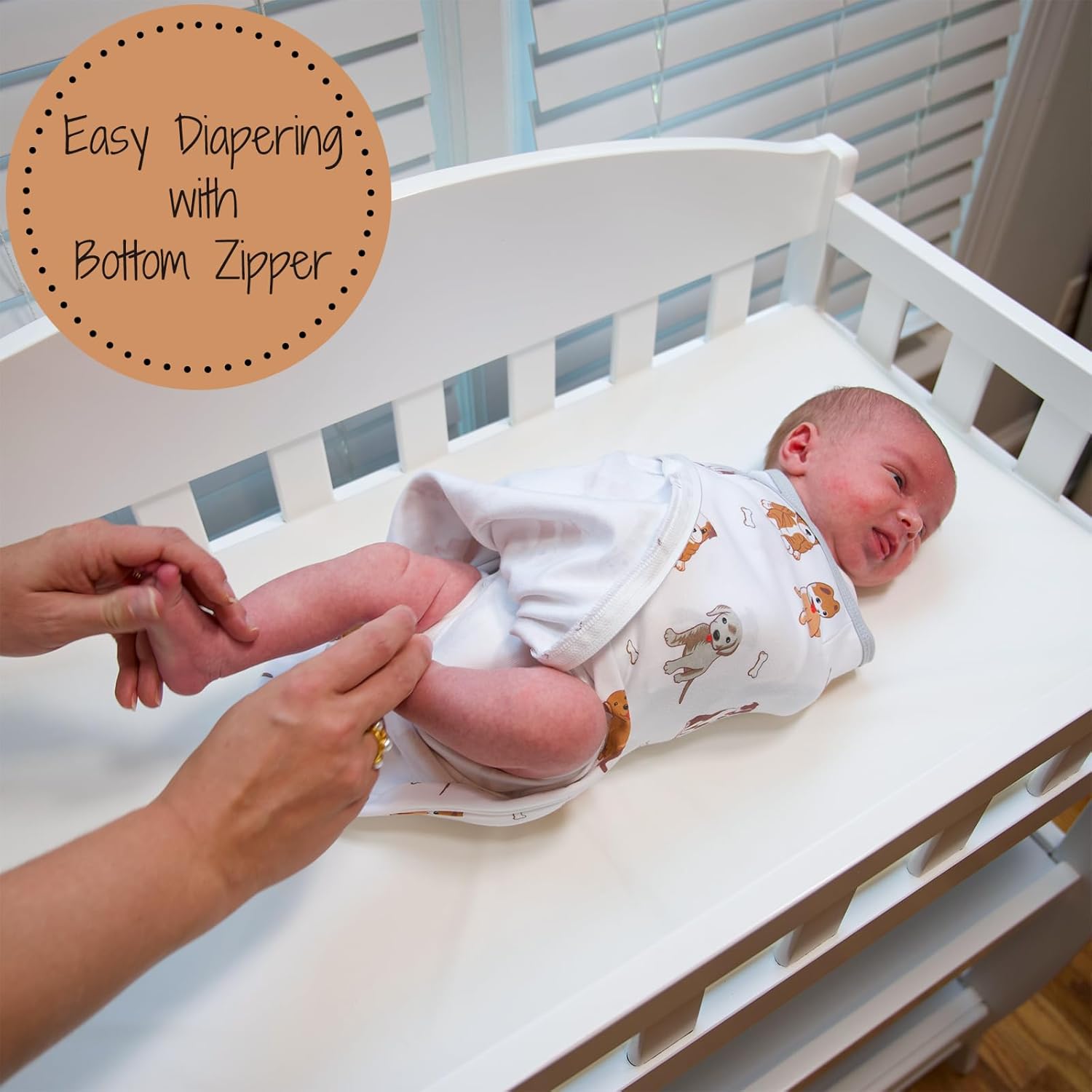 LollyBanks Baby Swaddles, 100% Organic Cotton Swaddles for Newborn Boy and Girl, 3-6 Months Swaddle Sacks with Easy Change Zipper, Swaddle Neutral Baby Registry (Puppies Print)