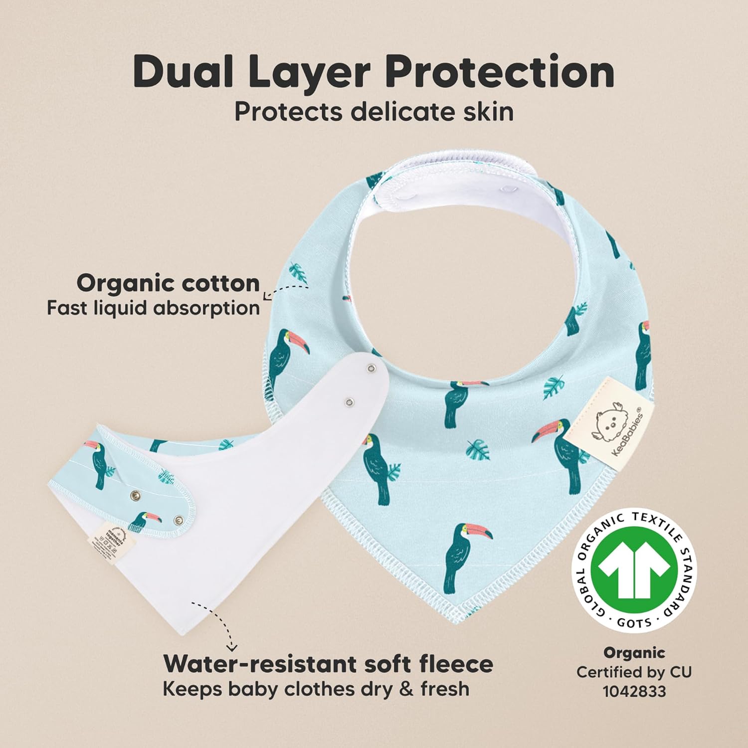 - Highly Absorbent - Our bandana bibs for baby boy feature a dual-layer of GOTS Organic Cotton for optimal absorption and backed with soft polyester fleece for extra protection. Easy to clean, ideal for daily use. Machine wash and tumble dry low.