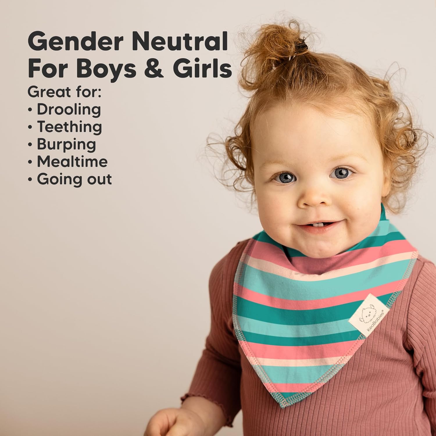 - 8-Pack Baby Bandana Bibs - KeaBabies Organic Drool Bibs come in gender-neutral shades to easily match your baby’s daily outfit. The soft and breathable fabric of these absorbent baby bibs ensure your little one stays cool while drooling and teething.