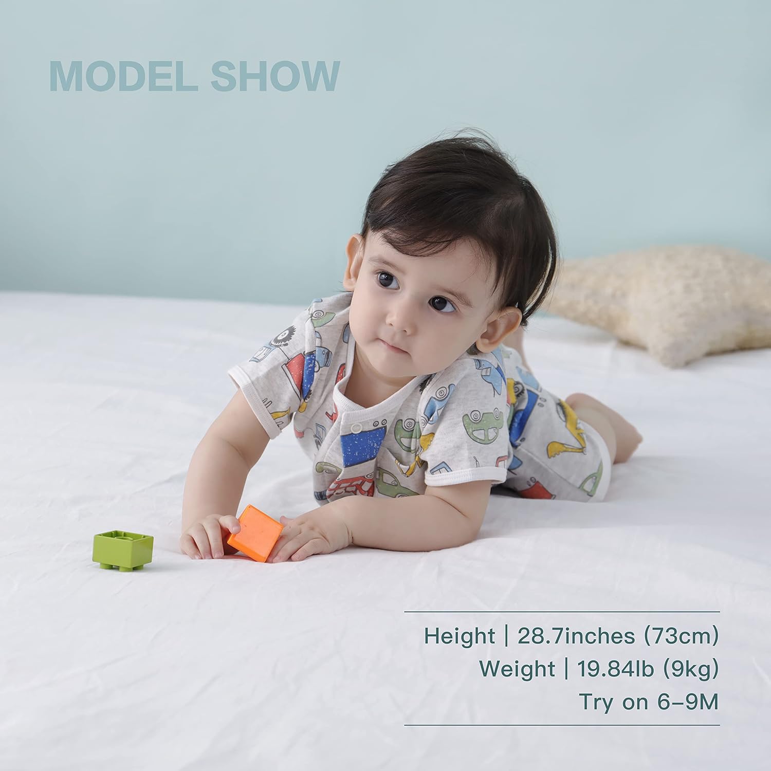 • Perfect Fit For 0-24M: Available in sizes from newborn to 24 months, these baby boy summer outfits grow with your little one, offering a snug yet flexible fit for crawling, walking, or lounging