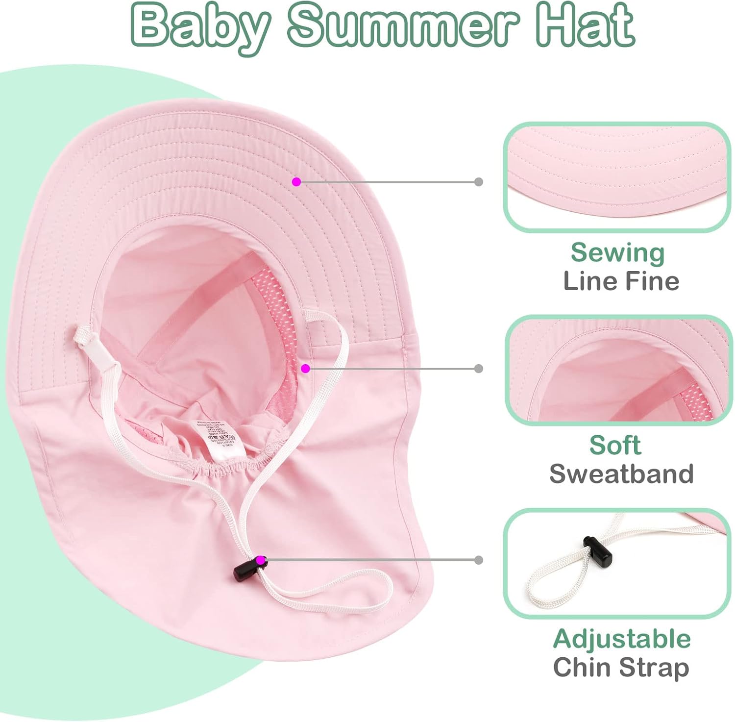 XIAOHAWANG Girls Sun Hat Baby Beach Hats Boys UPF 50+ Kids Summer Protection Cap Toddler Breathable Caps Wide Brim Neck Flap