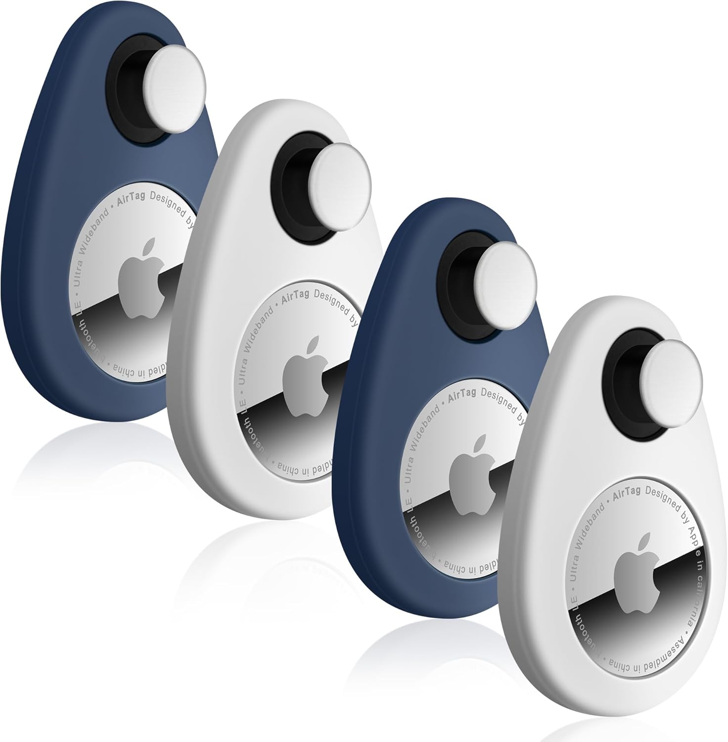 for Airtag Holder for Kids Hidden 4 Pack GPS Tracker Case, Anti-Removal for Airtag Silicone Case with Pins, Suitable for Children, Elderly, Pets, Backpack, Luggage(White, Blue)