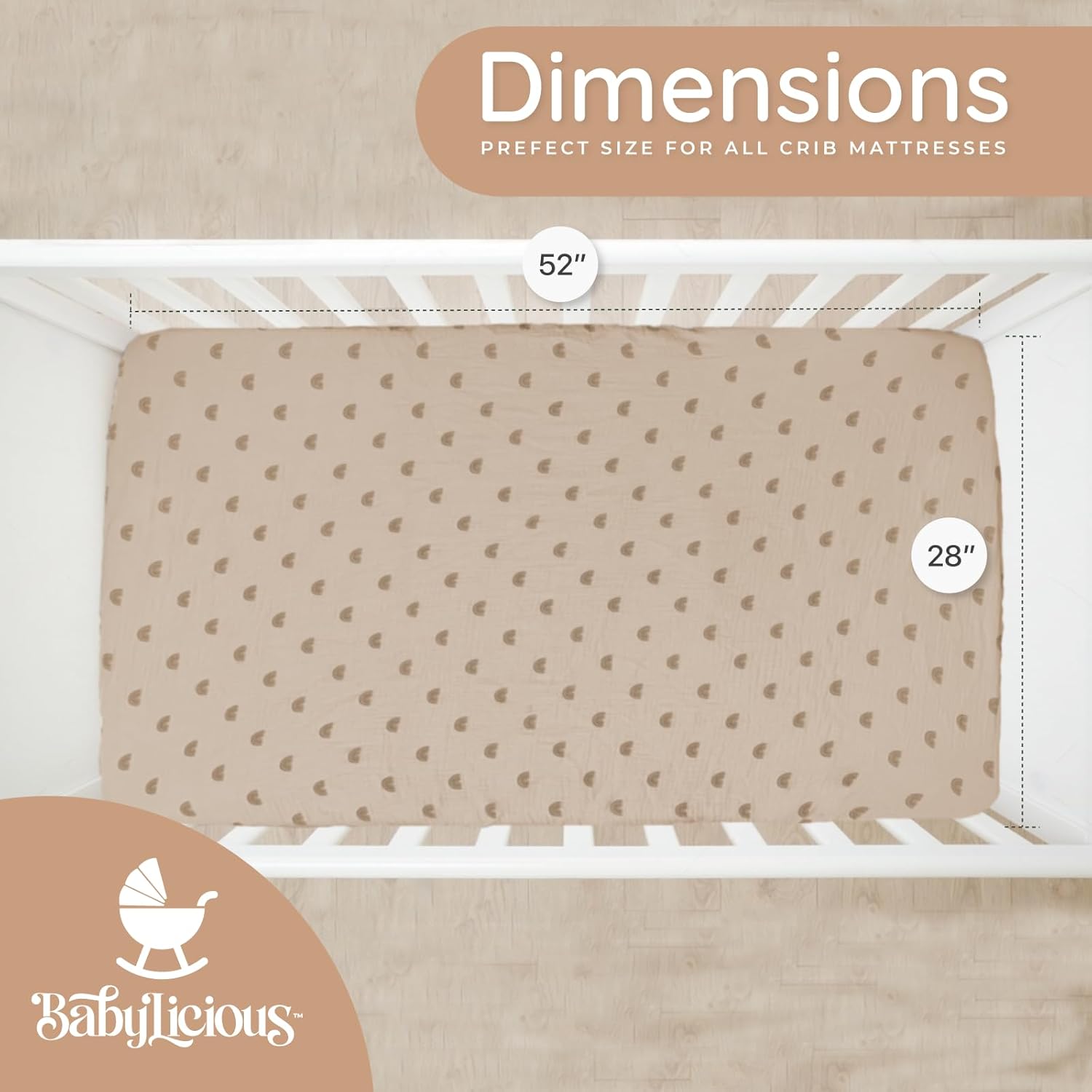 - Ideal Fit for Crib Bedding: Each crib sheet is crafted to fit snugly around your baby’s mattress. With a 360° elastic band, the fitted crib sheet stays in place, making it an essential part of your baby's crib bedding.