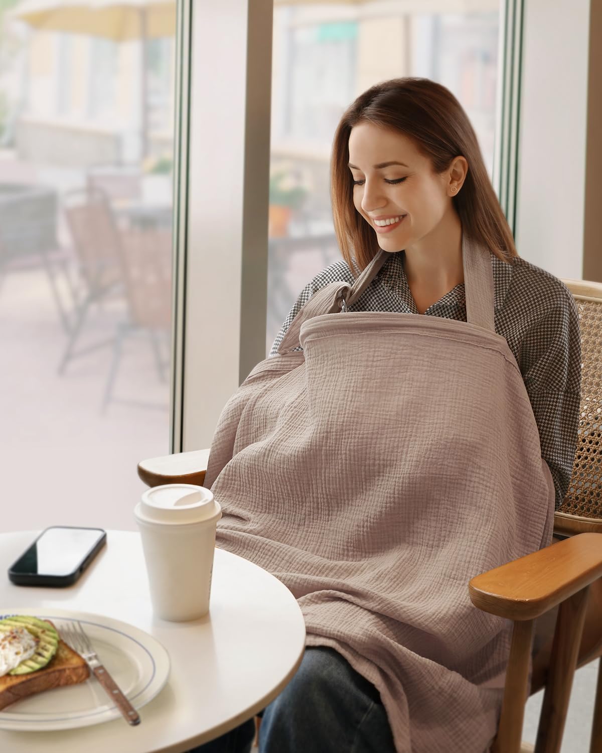 - Premium Muslin Cotton: The nursing cover is made of muslin cotton, which is soft, lightweight and breathable. It keeps cool and cozy for both mothers and babies, even in hot summer. Plus, the muslin material stays soft even after washing