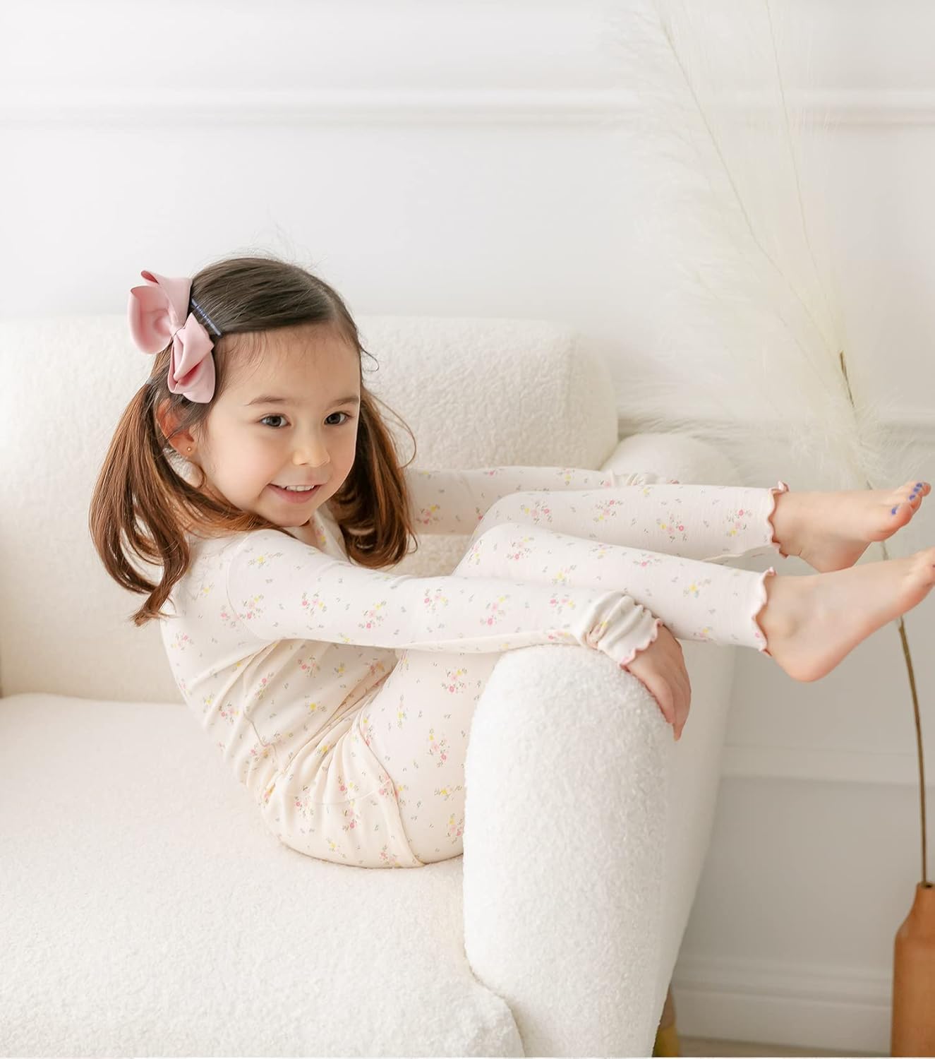 AVAUMA Baby Boy Girl Pajama Set 6M-7T Kids Cute Toddler Snug fit Flower Pattern Design Pjs Cotton Sleepwear Ruffled Shirring
