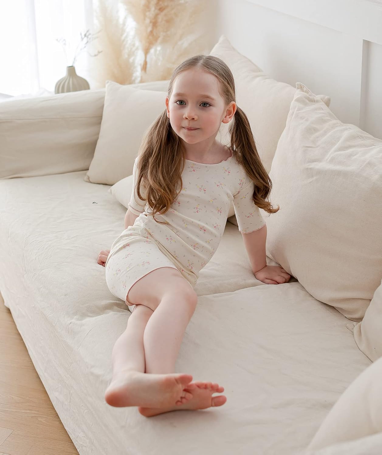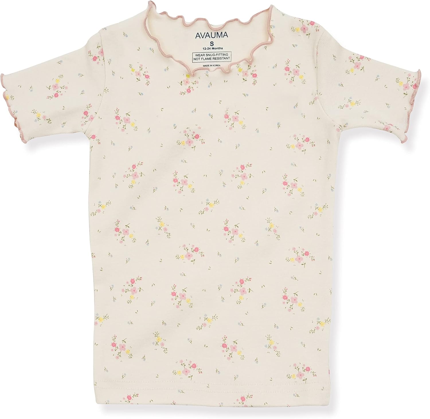 AVAUMA Baby Boy Girl Pajama Set 6M-7T Kids Cute Toddler Snug fit Flower Pattern Design Pjs Cotton Sleepwear Ruffled Shirring