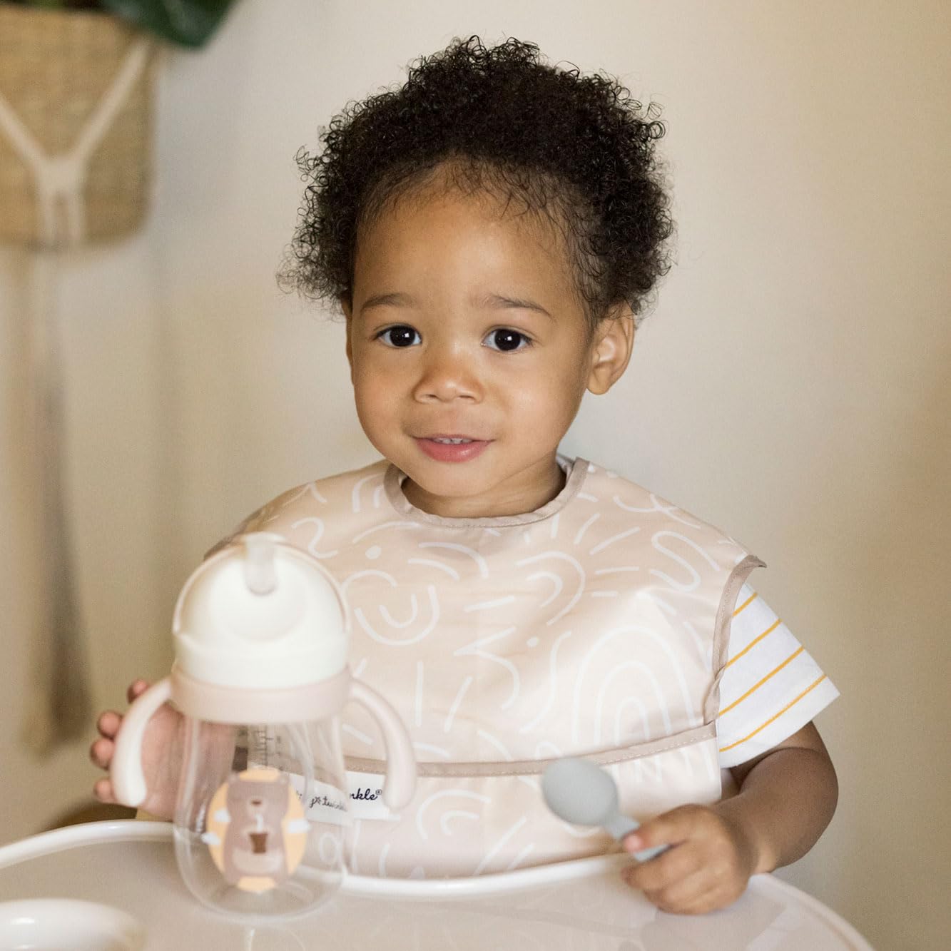Tiny Twinkle Mess Proof Baby Bibs for Eating - Waterproof, Wipeable Bibs - Toddler Bibs - Travel Friendly - PFAS, PVC, BPA, Phthalate Free - Baby Food Bibs(3 Pack,Zen Garden)