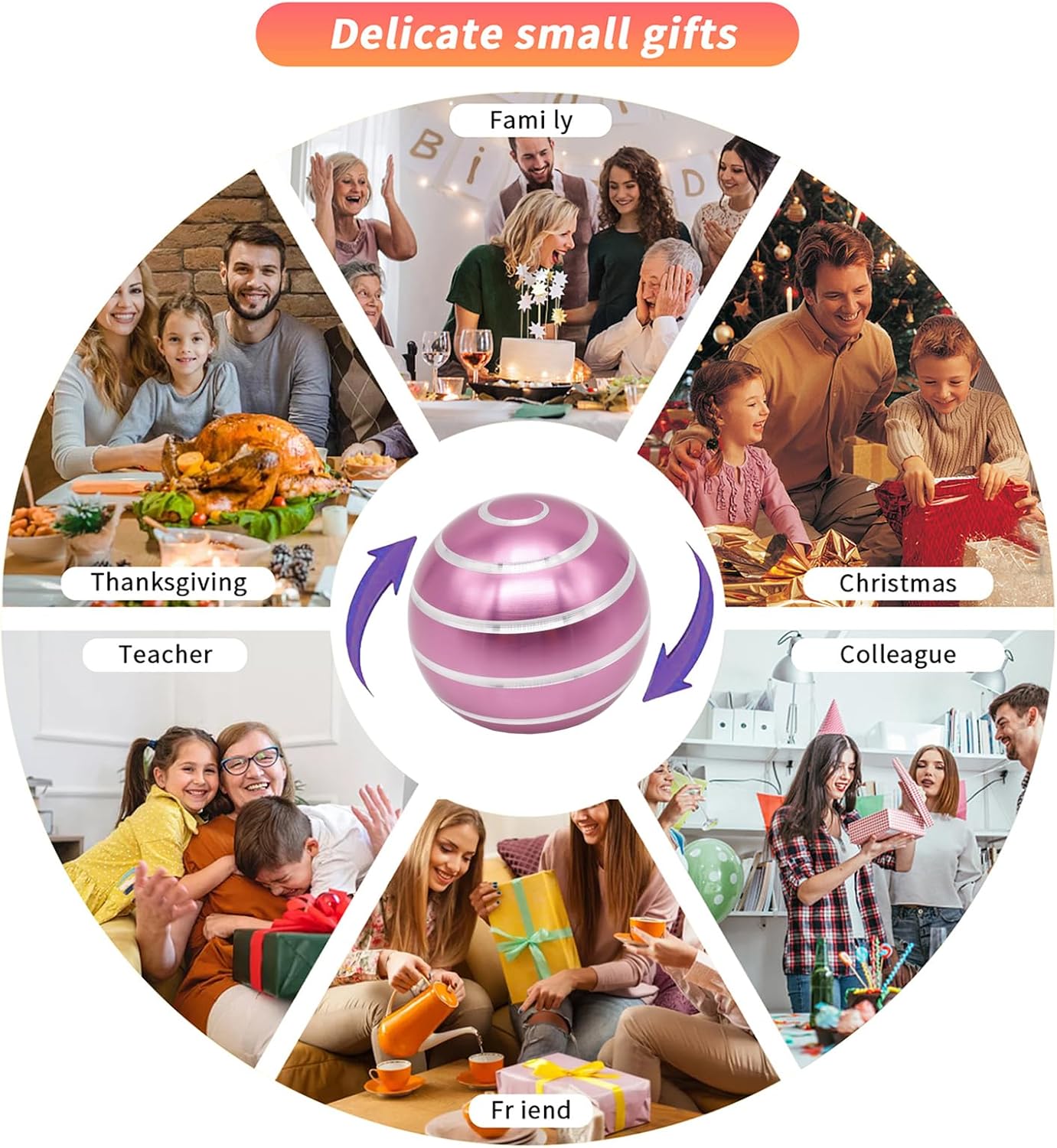 - 【Cool-Gadgets】The desk toys is equipped with high-quality bearings inside, so you can easily rotate it with just one hand for more than 60 seconds. And the cool-gadgets has spiral grooves milled on the surface so it can create a 360° spiral pattern to achieve the magical effect of a full-body-optical-illusion when is spinning.