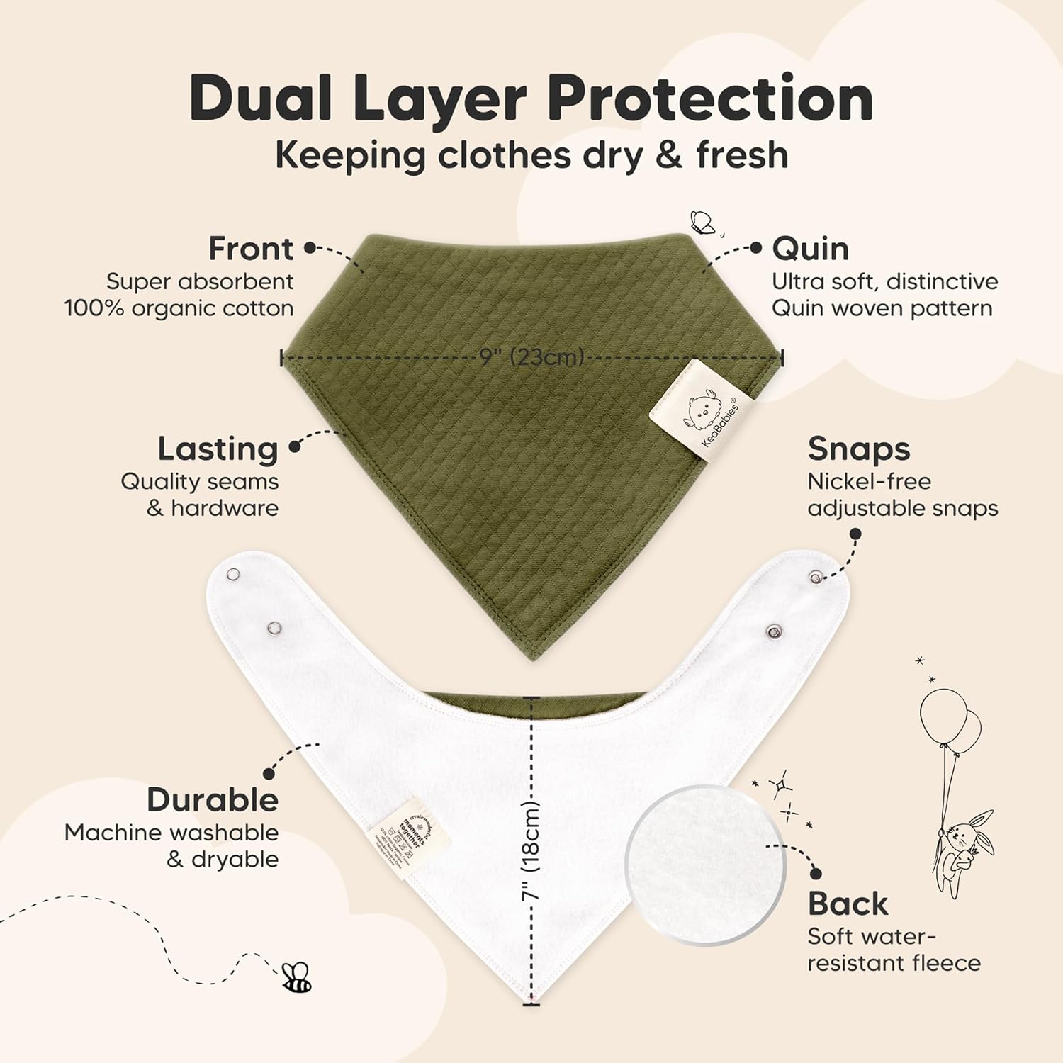 - 8-Pack Quin Bandana Bibs for Boys, Girls - Our organic baby bibs are exclusively designed by KeaBabies to ensure that your baby never runs out of styling options. Our drool bibs are easy to match, making them a fuss-free teething baby essential.