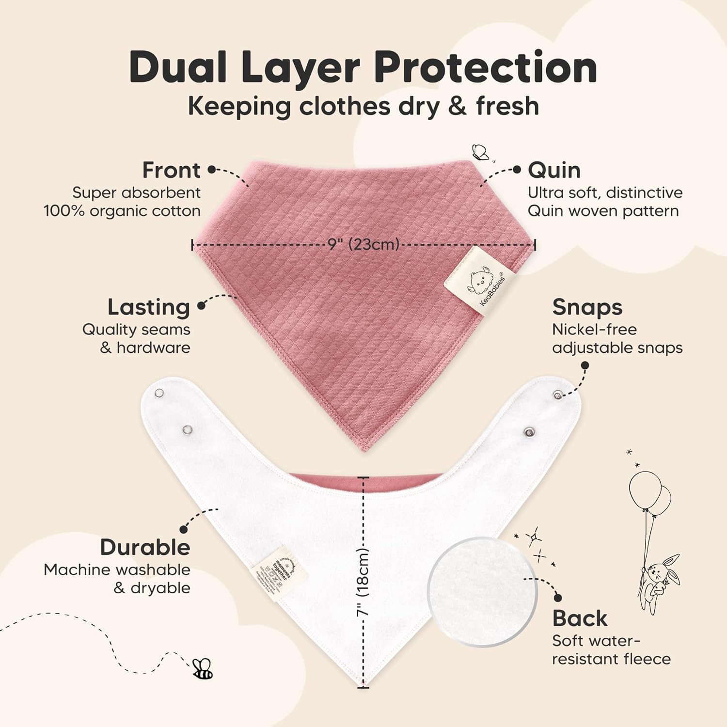 - Super Absorbent - Our organic baby drooling bibs are made with 100% organic cotton (GOTS-certified) Quin fabric and backed with water resistant fleece for added absorption. This dual layer design helps to keep your baby clean and fresh all day long.