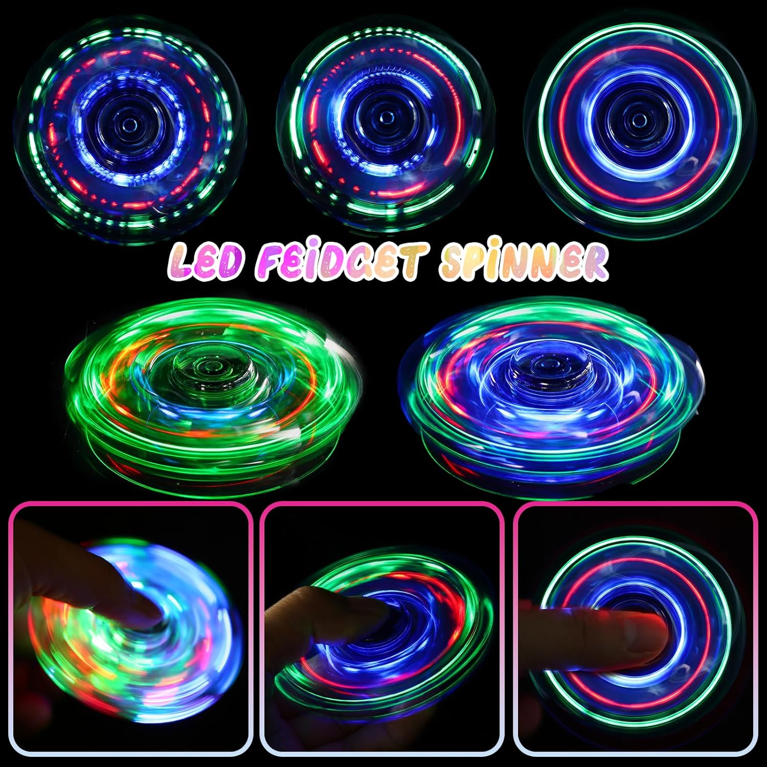 • REUSABLE INDIVIDUALLY PACKED GIFT BOX: What you will get- 1 Pcs Light Up LED Fidget Spinners. Each Spinner will be individually packed in its own box,it's portable and perfect classroom prize gift and return gifts for kids