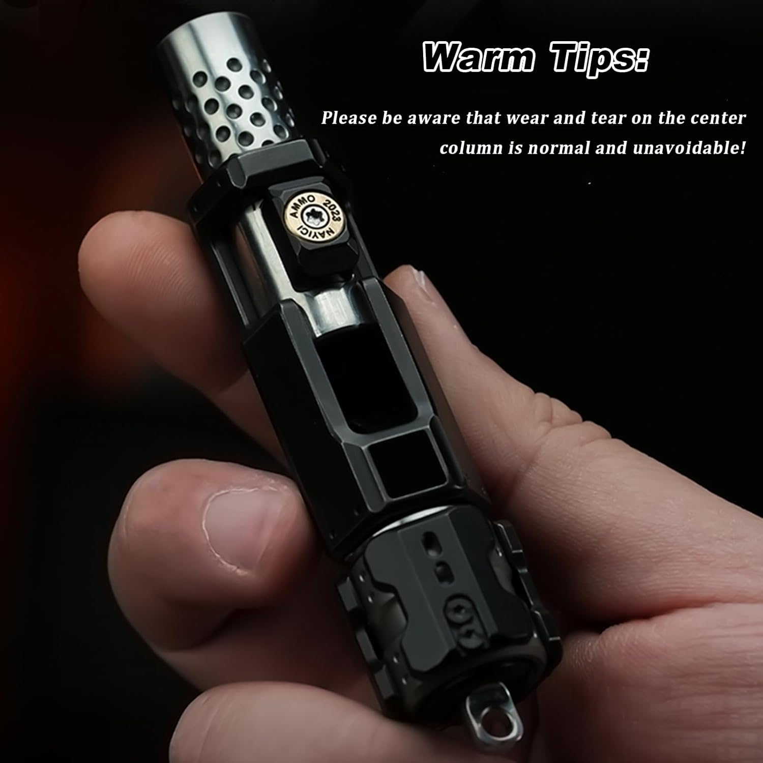 - 【Mechanical Structure】- Made of Zinc Alloy, Copper, Stainless Steel with black plating. Mechanical bolt structure, with its own crisp sound. The design is inspired by the structure of a mechanical bolt, which not only simulates the sound of pulling the bolt, but also has a 2-stage push and 4-direction push-push gameplay.