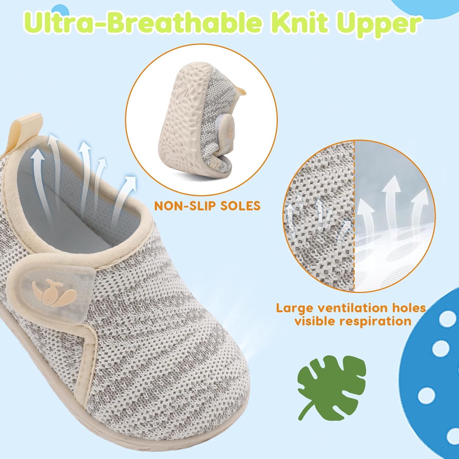 - Upper:Knitted Mesh Upper offers comfort and air permeability,has excellent breathability,moisture wicking function,and keep baby's feet dry and odorless.Super Soft,Breathable and Comfortable fit all the year