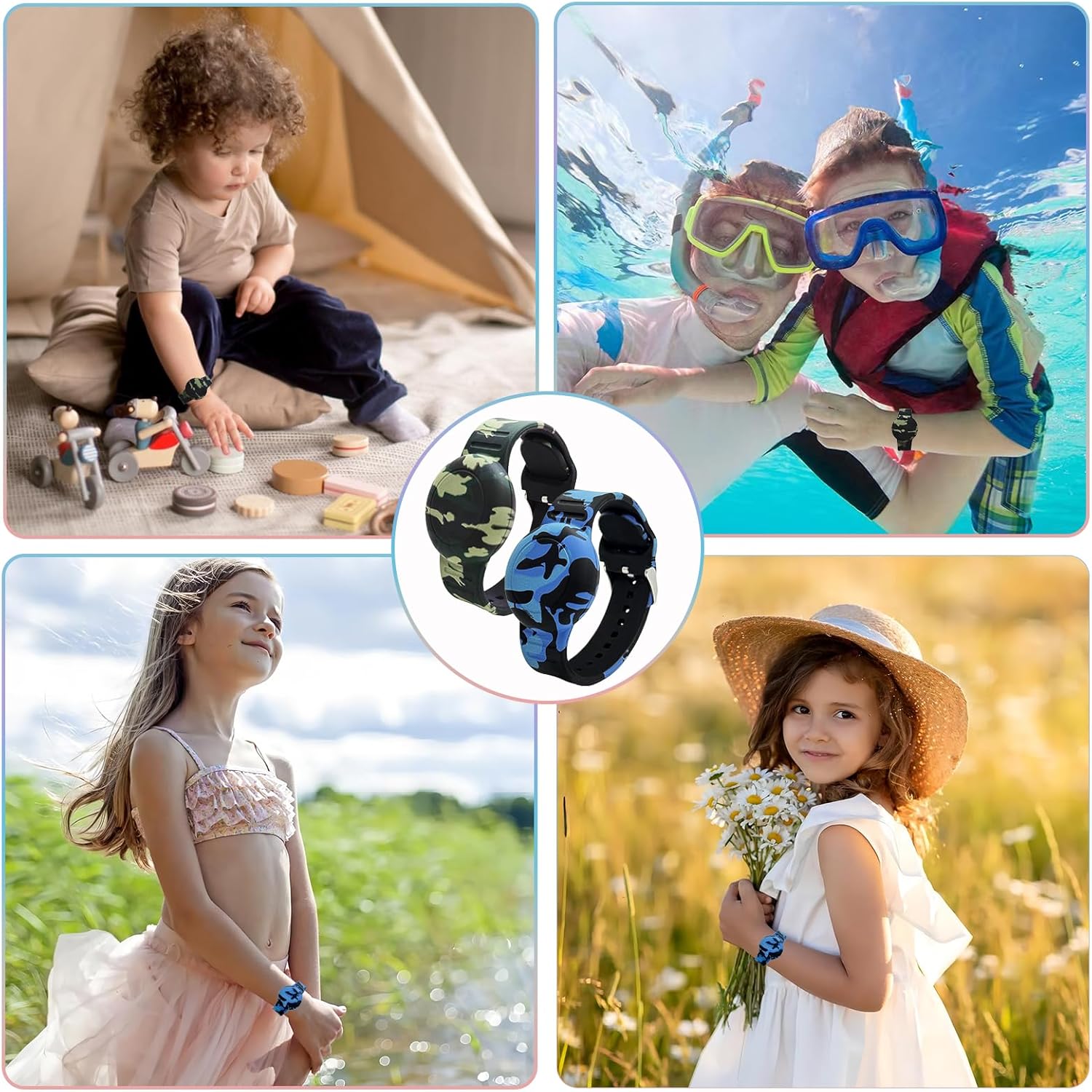 - 【Waterproof Upgrade】The AirTag wristband features a full-coverage design that encloses the Air Tag in a round protective lid. This design achieves better water resistance, making it suitable for splashes while playing in the pool or at the beach. This will keep your AirTag up and running and looking new. (Can be used for waterproofing in life, NOT be immersed in water for a long time)
