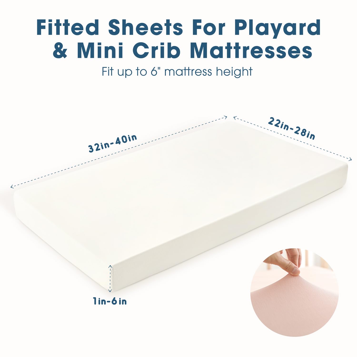 GRSSDER Mini Crib Sheets Fitted, Pack and Play Sheets 2 Pack, Ultra Soft Stretchy Pack N Play Sheets, Universal Fit for Playard Mattress, Jersey Crib Sheets for Boys and Girls, Cream/Pink