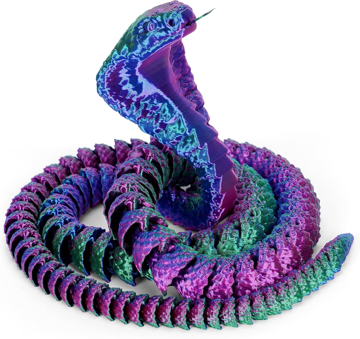3D Printed Snake 3D Printed Animals 26in Printed Cobra Fidget Toys for Adults 3D Printed Articulated Cobra Flexiable Crystal Snake Toys for Home Office Decor
