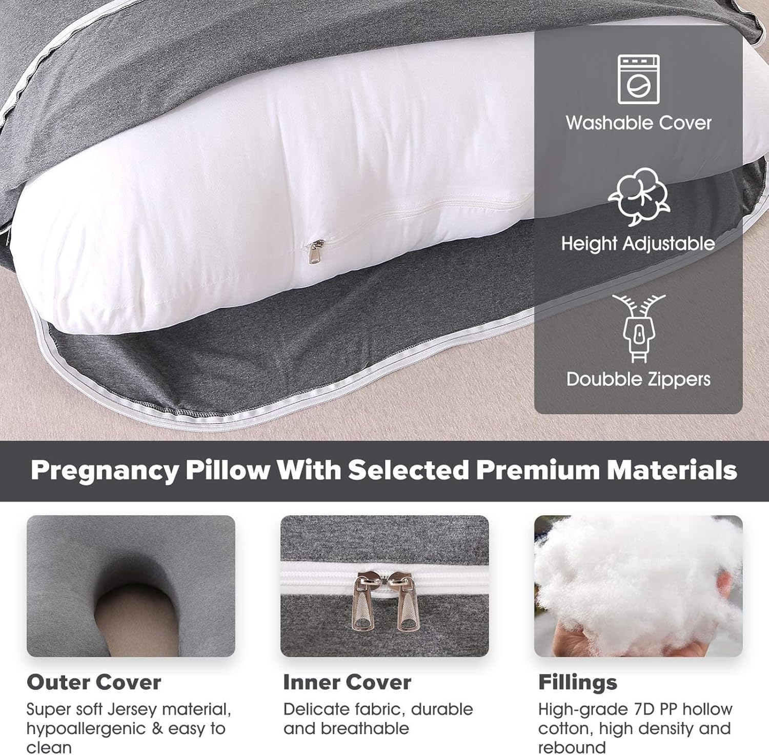 BATTOP Pregnancy Pillow for Sleeping, Full Body Pillow for Pregnancy Women with Removable Cover, 57 Inch Maternity Pillow, Support for Back, Legs, Belly, HIPS(Black Drey)