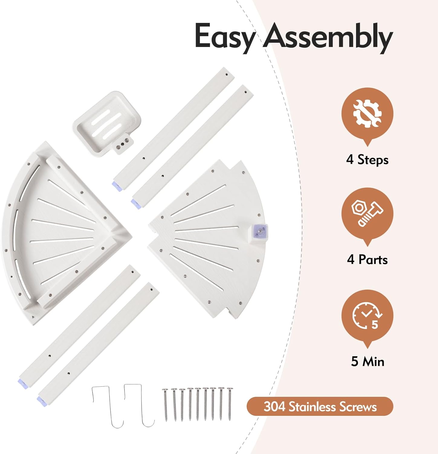 - 【HDPE Material】Made of High-density polyethylene (HDPE) and stainless steel hardware, it will not crack, scratch, rust, or fade over time. The triangular structure and the thickened legs ensure the stability of the corner shower bench. In addition, the surface is designed with faux wood grain, making it sturdy and durable while maintaining a vintage and elegant aesthetic.