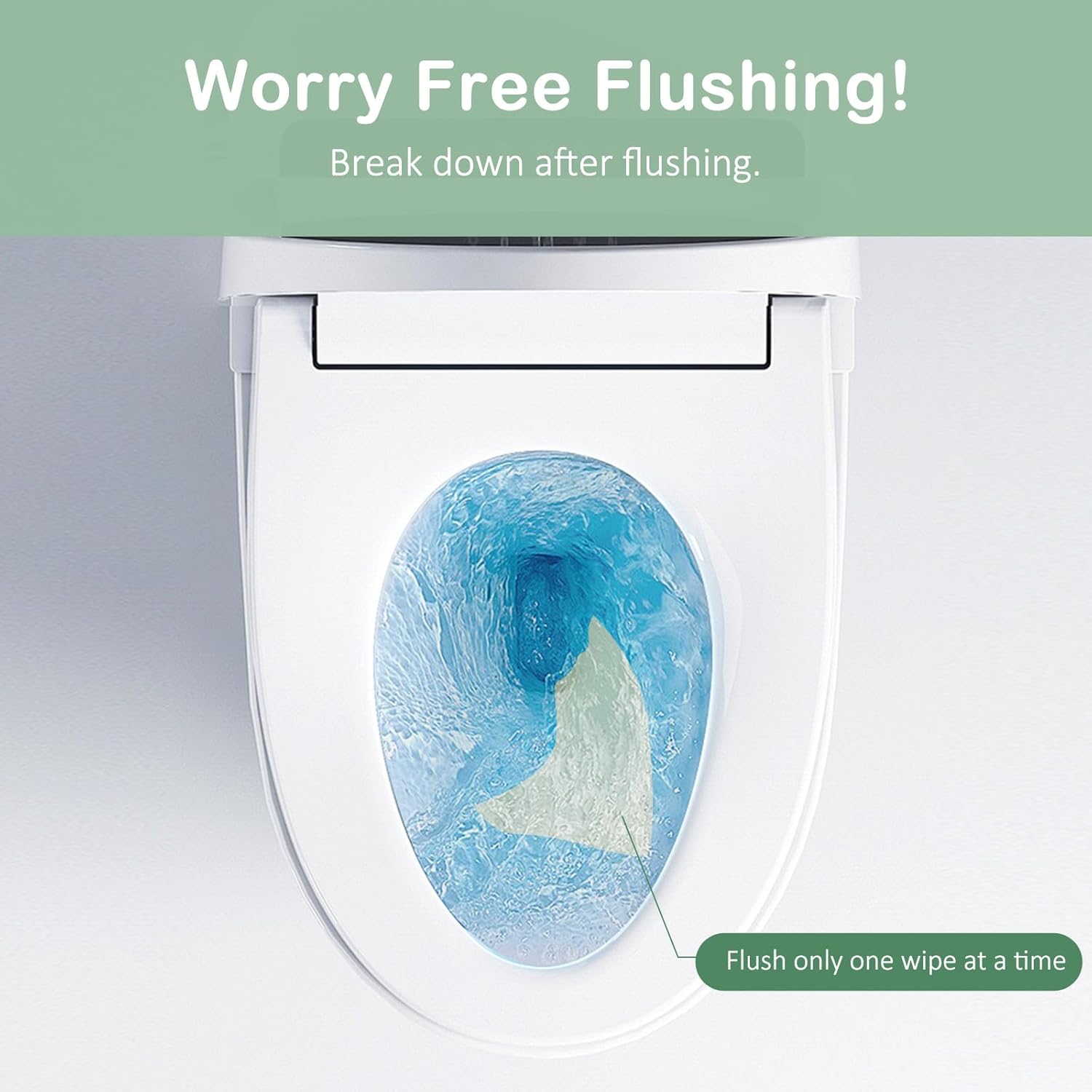 - Clog-Free Flushable: Flush with ease, as our tree-free flusable toilet wipes begin to break down when exposed to water, making it safe for septic and sewers, and won't cause any blockages (one sheet at a time recommended)
