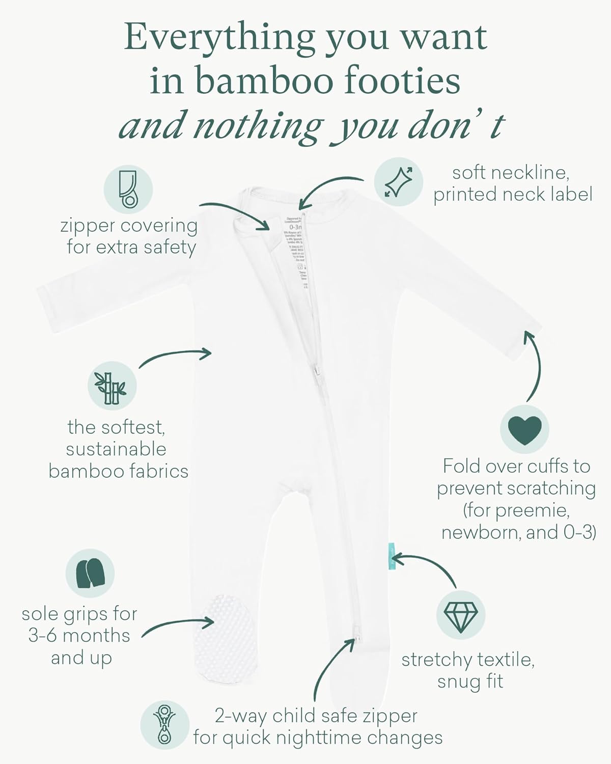 Baby Zipper Footie Pajamas, Supersoft Bamboo Rayon Baby Footed Pjs Boy Girl 0-3-6-9-18-24 Month Coverall Sleepers