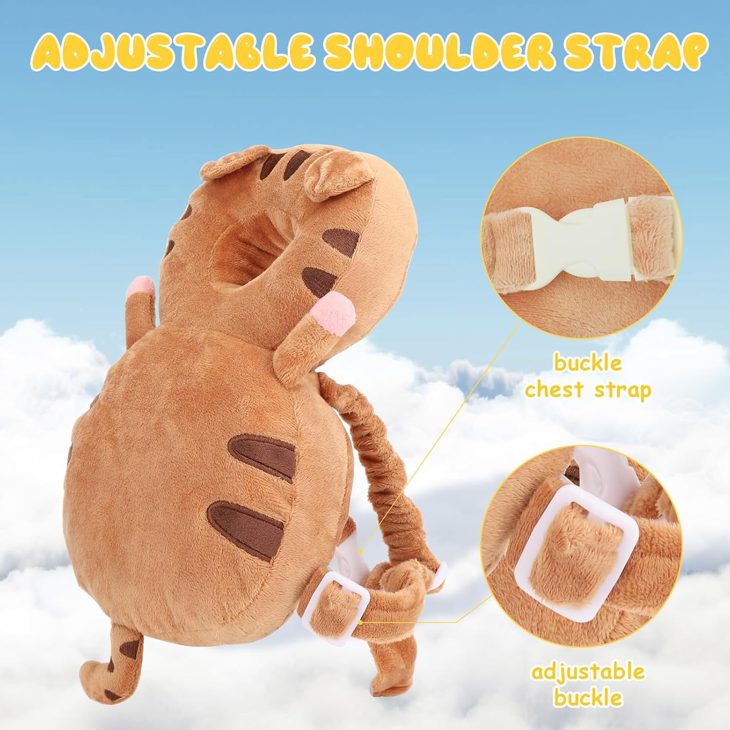 - Style : Backpack with Head Protection, Adjustable Plush Straps, and Cartoon Design