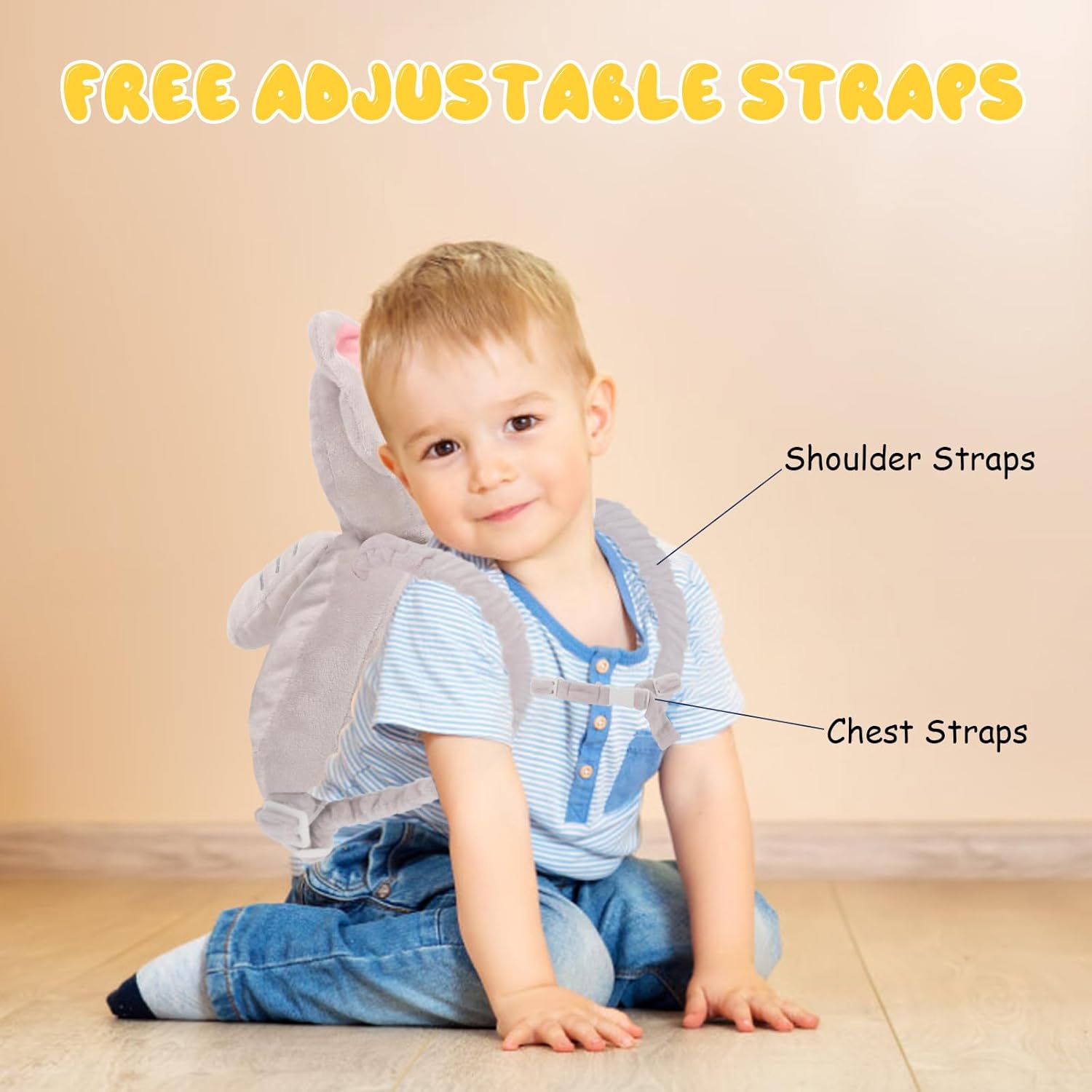 Baby Head Protection Backpack - Soft & Comfortable, Cute Cartoon Design, Elephant