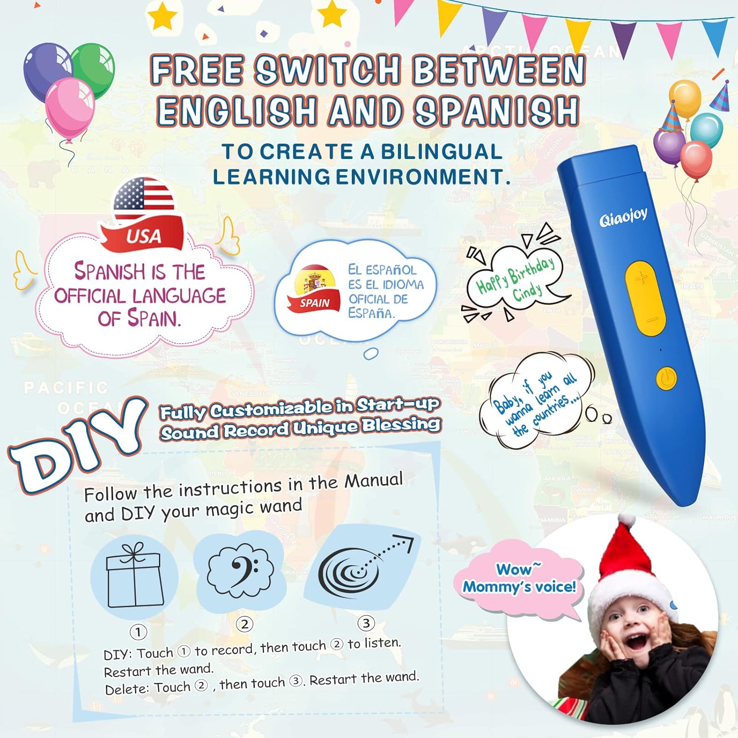 - 【Innovative Interactive Design】Each touch of the interactive poster with the audio pen reveals fascinating facts and stories about the celestial body. With bilingual support (English and Spanish) and personalized voiceovers, space explorer caters to children from different cultural backgrounds, making learning more enjoyable.