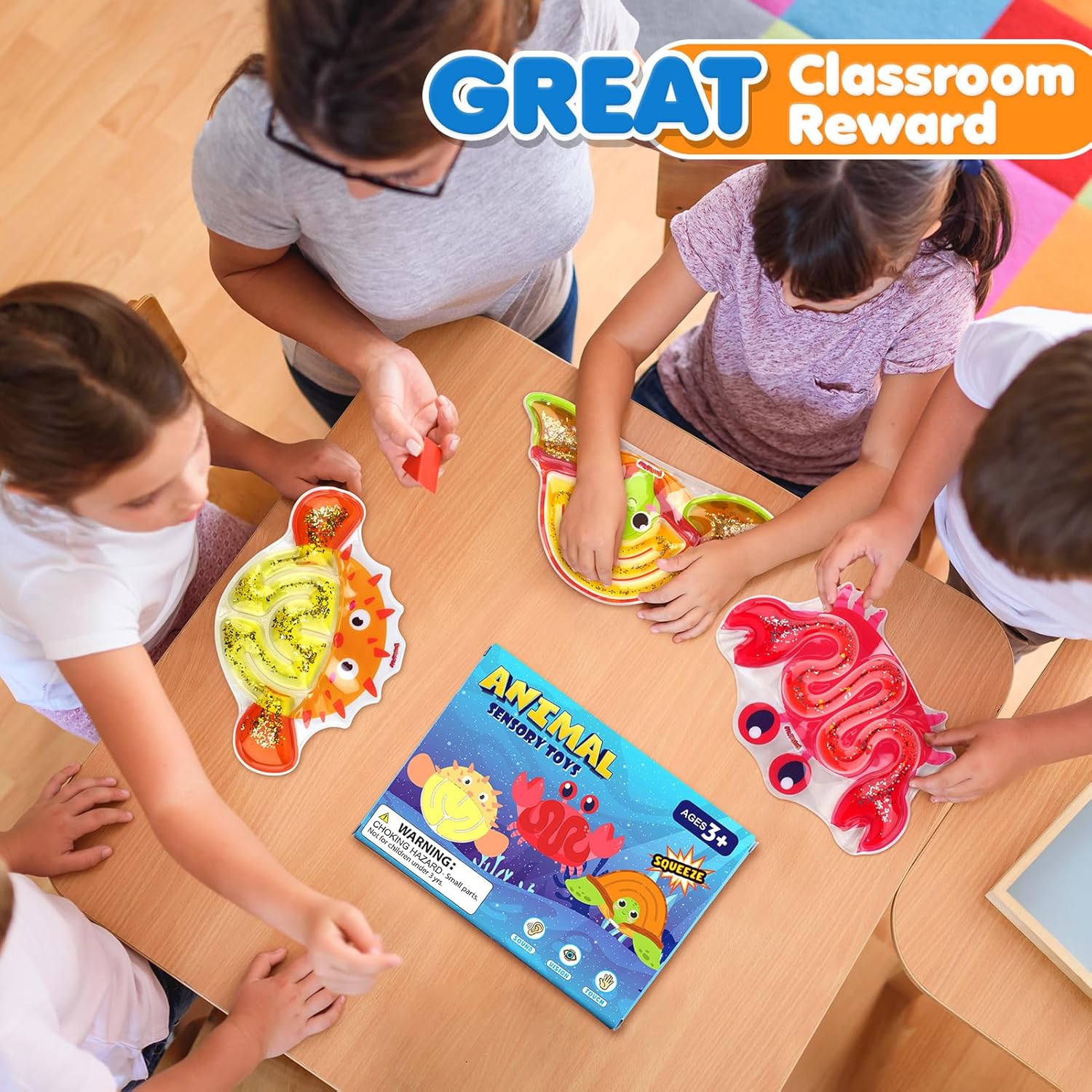 - 【Fun Autism Sensory Toys】 Animal Kids sensory toys come in three different bright colors with paths that resemble twisted mazes. During playing, with Just a gentle squeeze, these adorable fidget autism toys unveil a mesmerizing dance of liquid accompanied by the delightful symphony of colliding beads. Engaging your sight, sound, and touch senses offers entertainment and effective relaxation.