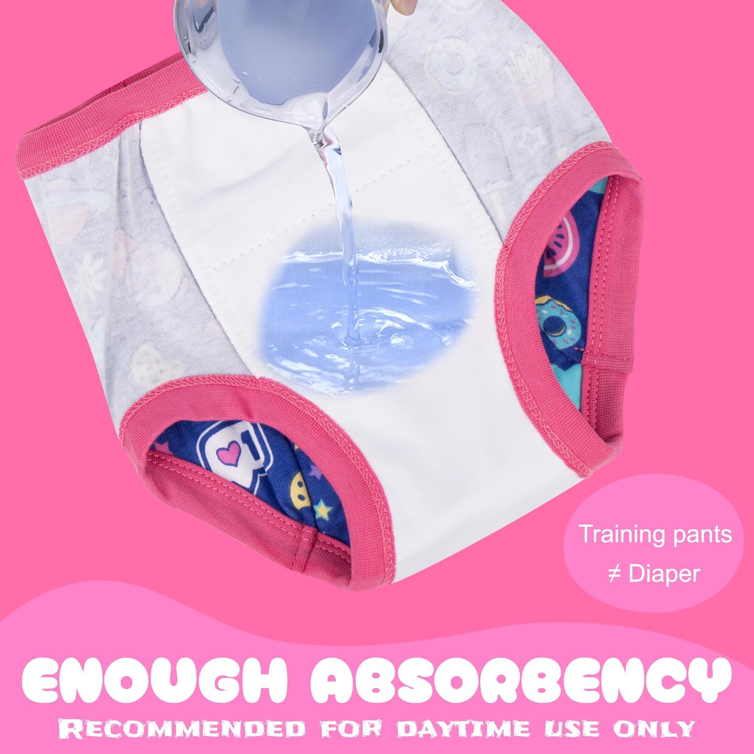 - Multi-Layer Leakproof Design: Our toddler potty training pants feature a multi-layer structure, effectively containing minor accidents and holding fluids to prevent puddles. While they don’t absorb as much liquid as diapers, their design is aimed at alerting toddlers and parents early, supporting the potty training journey.