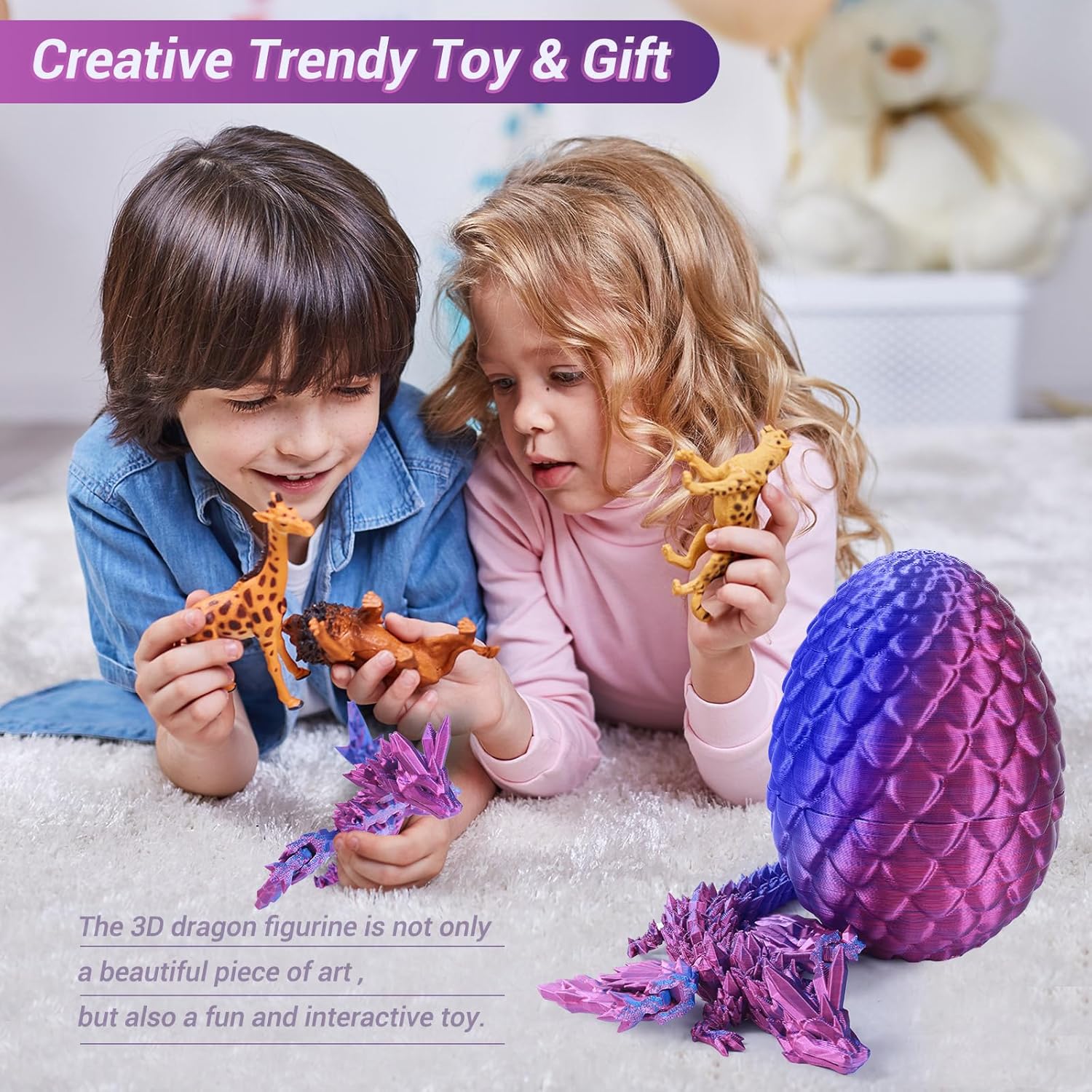 - 🐉【Mystery Dragon Egg】3D dragon eggs with dragon fidget inside includes an articulated dragon with Wings (Length 12") and an matched color egg (3.5"x 3.5"x5").