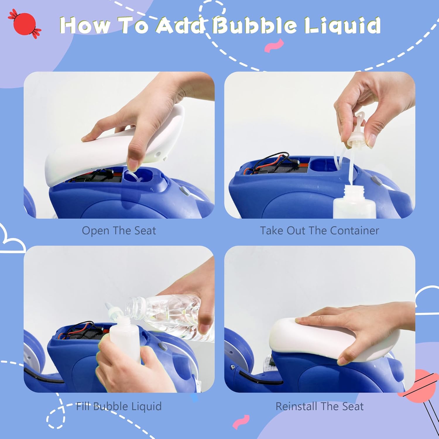- Comfortable Children Balance Motorbike with Remote & Bubble Machine: Our ride-on toy features a non-slip soft handlebar designed for small hands, while the wider and thicker seat offers excellent shock absorption. With durable EVA wider tires that are noiseless and gentle on wooden floors, and 4 wheels for a smooth ride on various surfaces, it's perfect for both indoor and outdoor activities.