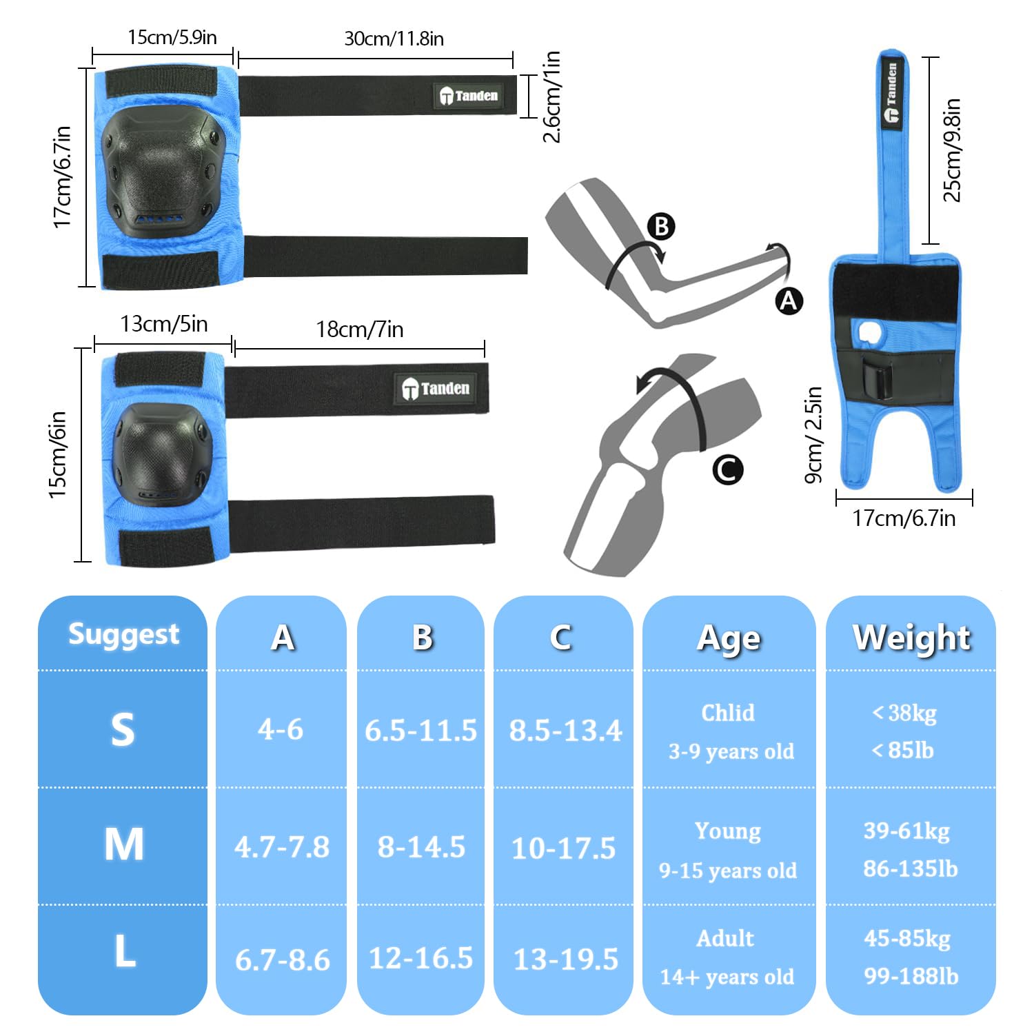 - Adjustable Size - Our medium size is best suited for youth aged 9 to 15 years old. Equipped with several adjustable, elastic straps for a customizable fit, this youth skateboard pads guarantees unrestricted movement during sports.