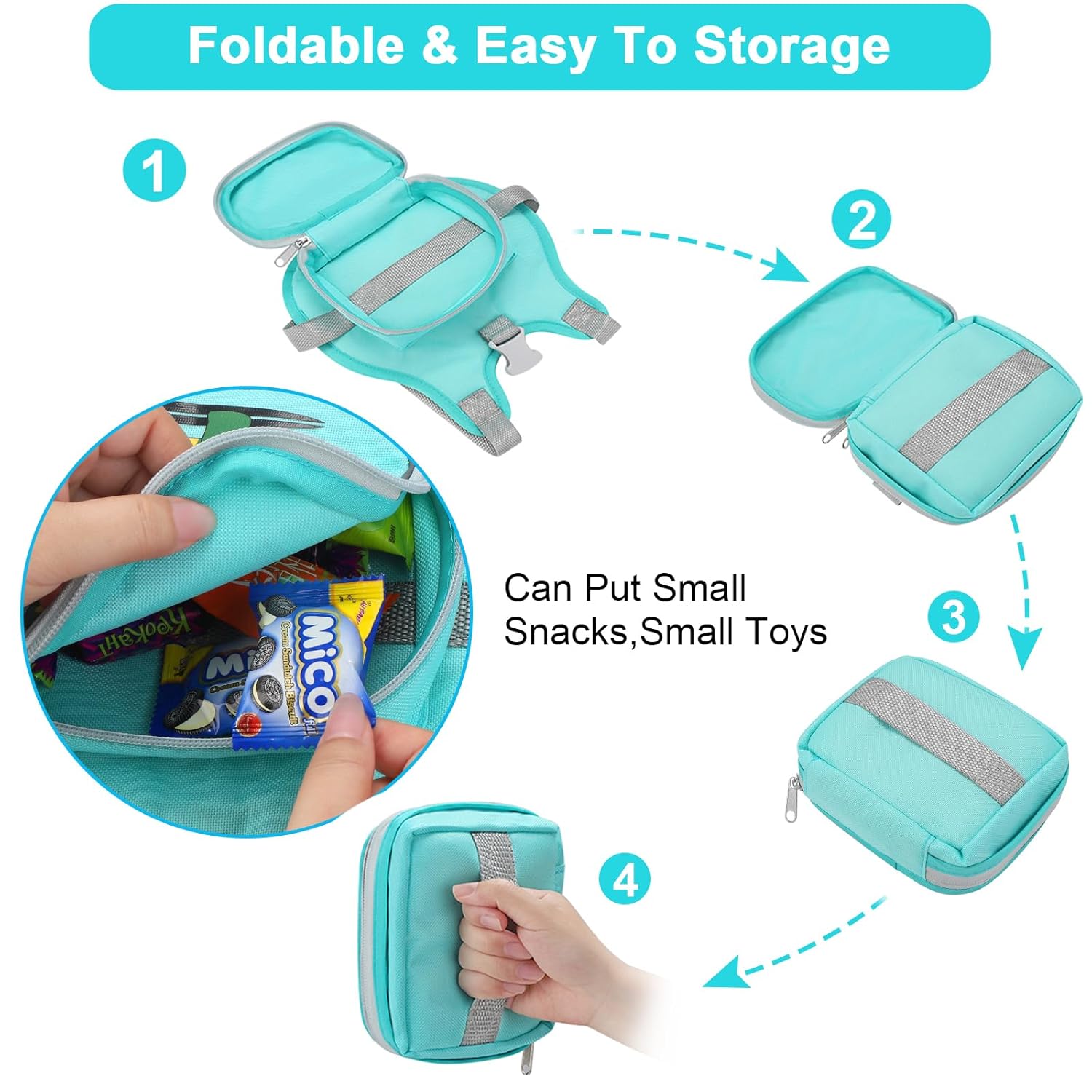 - Foldable & Reflective: There is a small pocket on the back of the harness, you can fold it when you don’t need it, which is very convenient to carry. The wrist link and tether are reflective, making it secure for children to go out at night