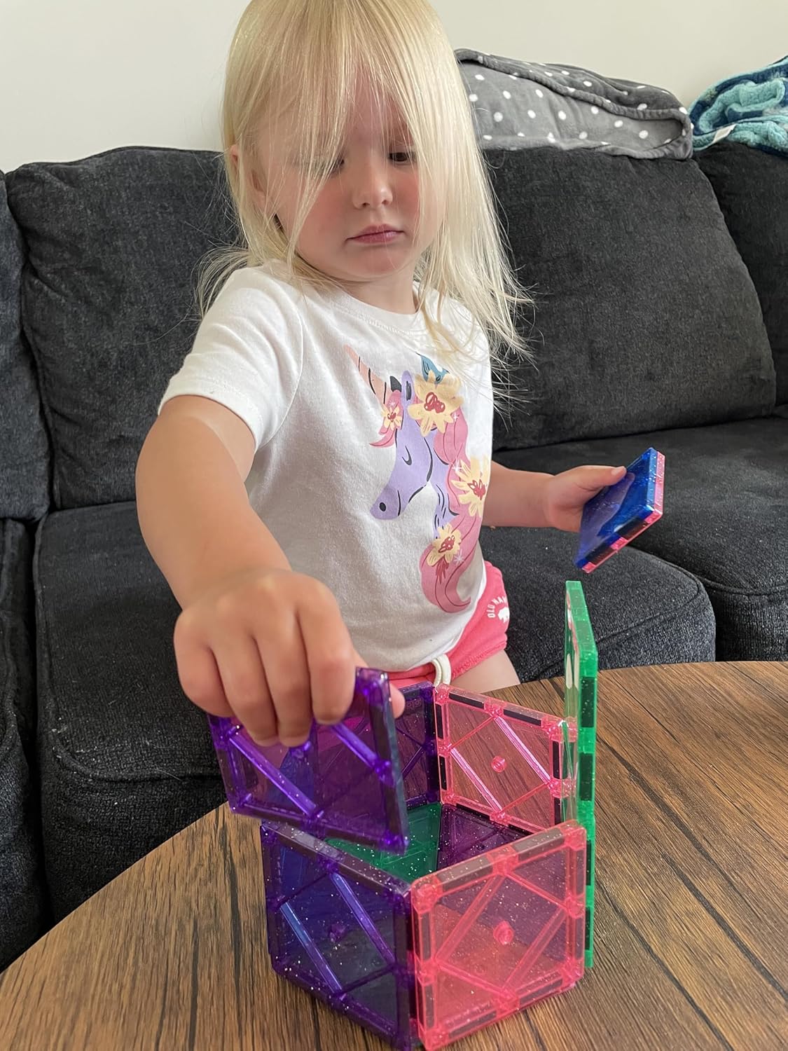 CreateOn Crayola Magnetic Tiles, Building Set for Kids, Magnetic Toys for Kids, Travel Toys, Classroom Sensory Toy Blocks, STEM & Montessori Tools for Boys & Girls Ages 3+, 14-Piece Set (Glitter)