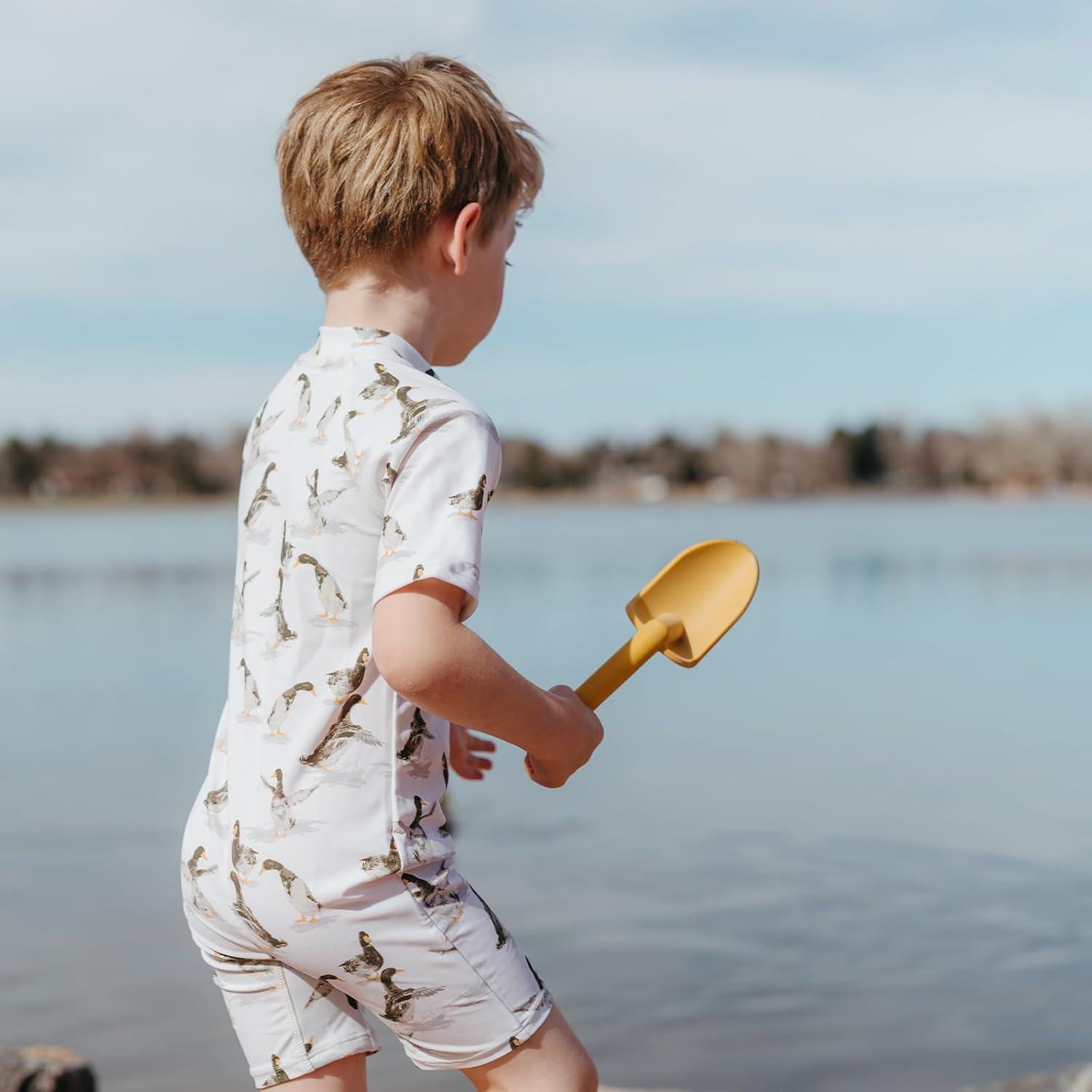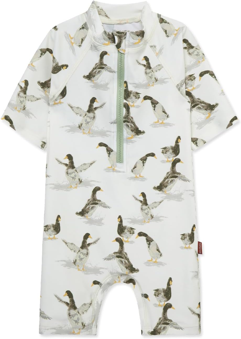 Milkbarn One Piece Swimsuit, Short Sleeve Zipper Bathing Suit for Infant Baby Boy Girl, Toddler Rash Guard Swimwear, Duck
