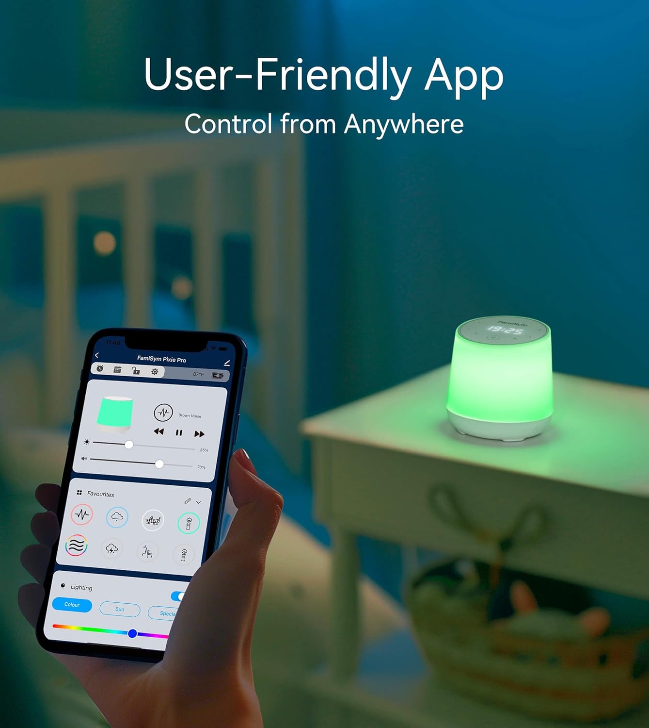 - Our latest, Pixie Pro smart sound machine is now Wi-Fi enabled(2.4GHz only), with dimmable clock & temperature display, ambient night light and even more features for dreamy sleep! Growing with your child – healthy sleep at every age.