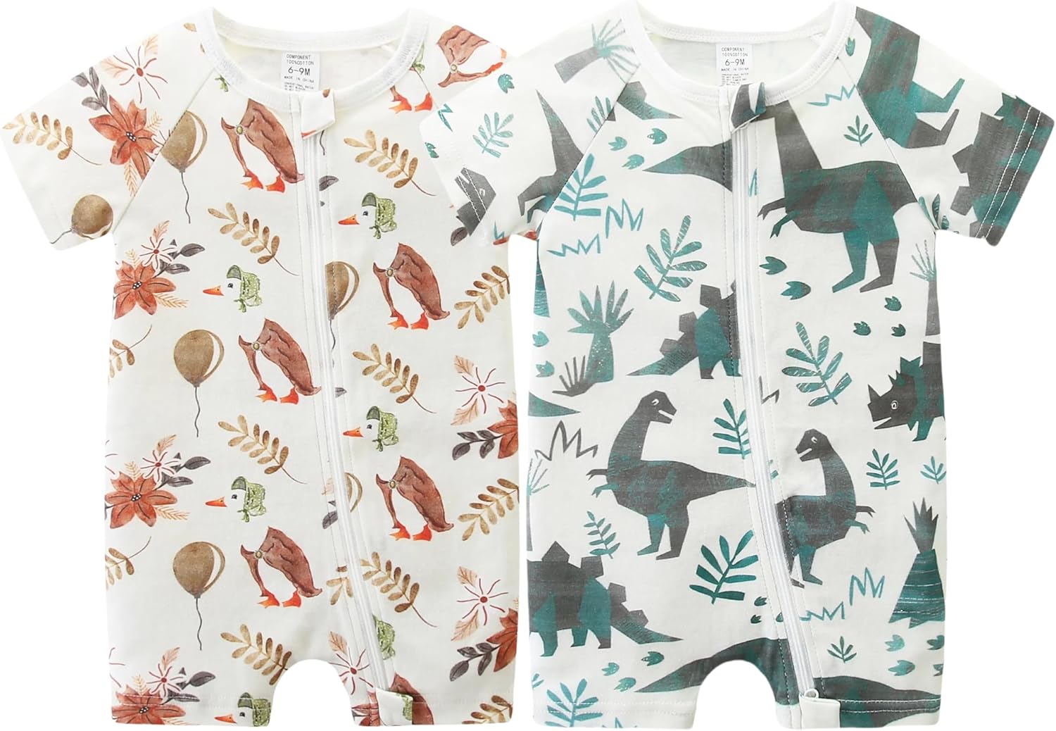 Unisex Summer Trendy 2-Pack Rompers Short Sleeve Zipped Bodysuit Infant Cotton Outfits