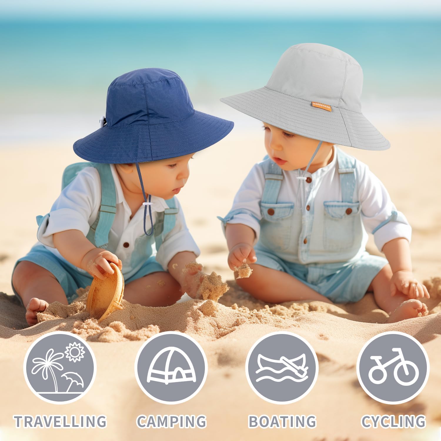 • PREMIUM MATERIAL: The baby sun hat is made of high quality polyester fabric, soft,quick-drying,skin friendly and breathable. The toddler sun hat with UPF 50+ UV sun protection keeps baby head cool and comfortable in hot summer.The baby bucket hat is convenient for your child to wash frequently and to match for different clothes