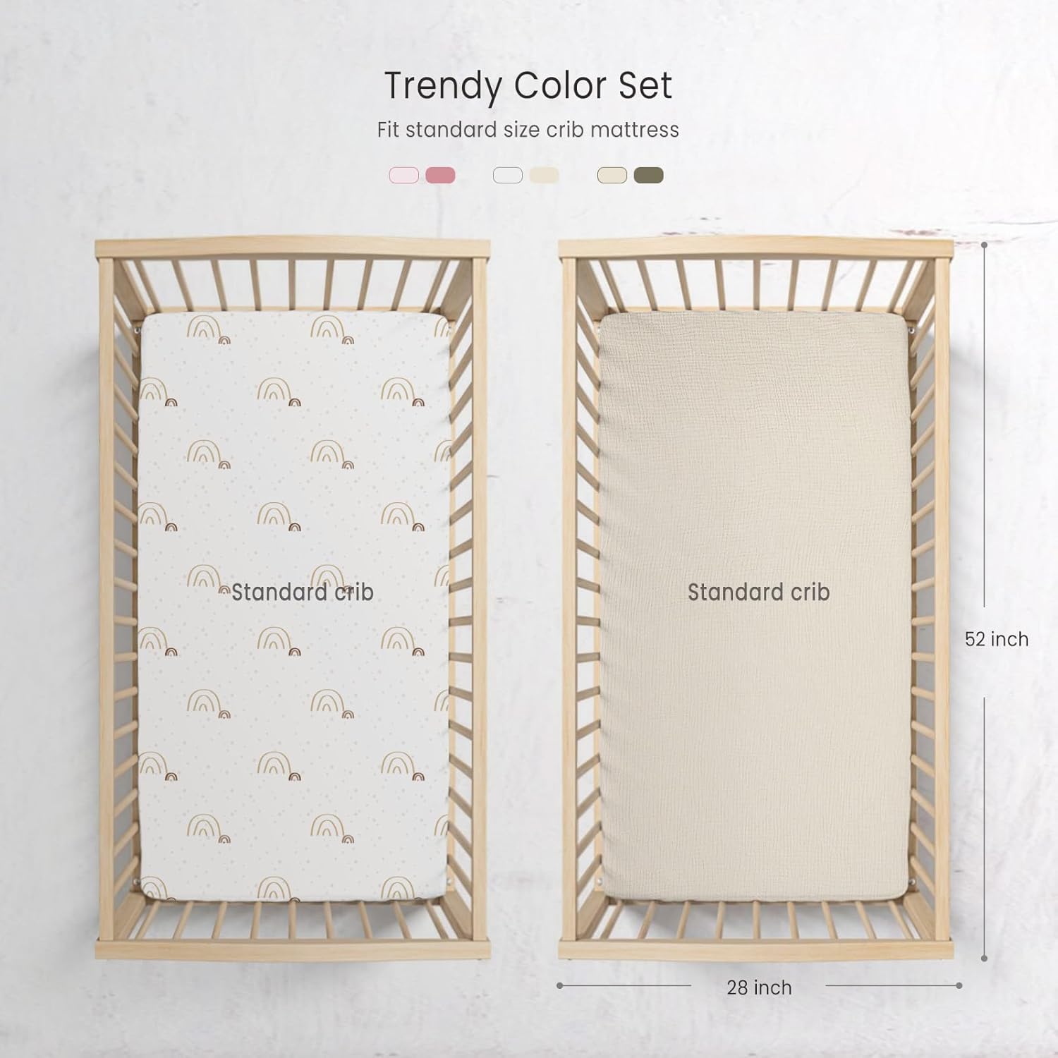 - MUSLIN COTTON - Our crib sheets are made of 100% muslin cotton.The soft and breathable material won't irritate baby's delicate skin and allows your baby to get comfort.