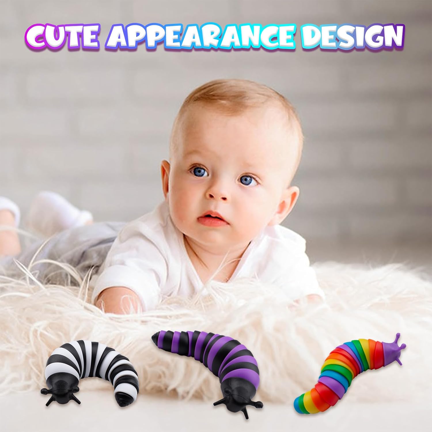 Cevioce 3 PCS Fidget Toys Slug for Adults & Kids Sensory Toys for Kids 8-12 Colorful Autism Toys for Toddlers Autistic Children Toddler Toys Age 3-4 Christmas Stocking Stuffers Gifts for Kids Teens