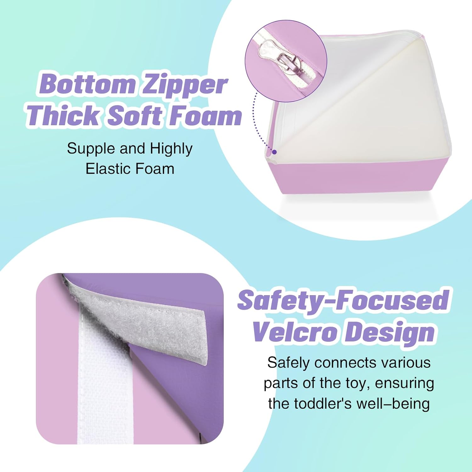 - 6-Piece Set: Baby climbing blocks consists of 1 pink stair, 1 lilac purple stair, 1 azure blue half-moon, 1 lake green half-moon, 1 purple square and 1blue slide. This soft play equipment stimulates your child's imagination to create endless combinations of structures, allowing them to enjoy the fun of the toy as they climb up and down, stacking and swapping four different shapes