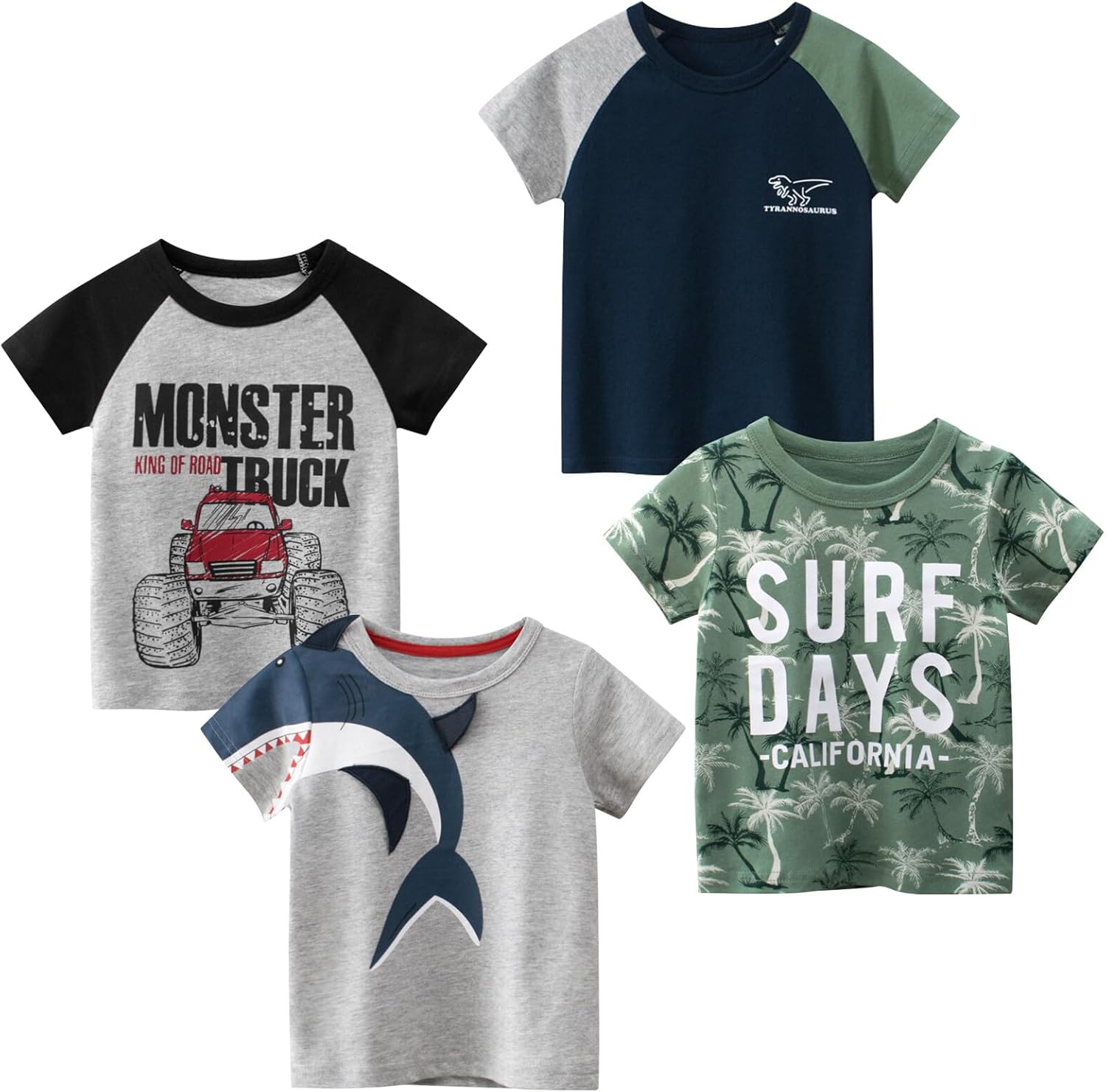 - 【Theme 5-Packs】We follow the T-shirt 3D printing of the pattern of this new batch of 2023 T-shirts into different combinations of three pieces, there are cars, dinosaurs, aliens, solid colors, stripes and other options.