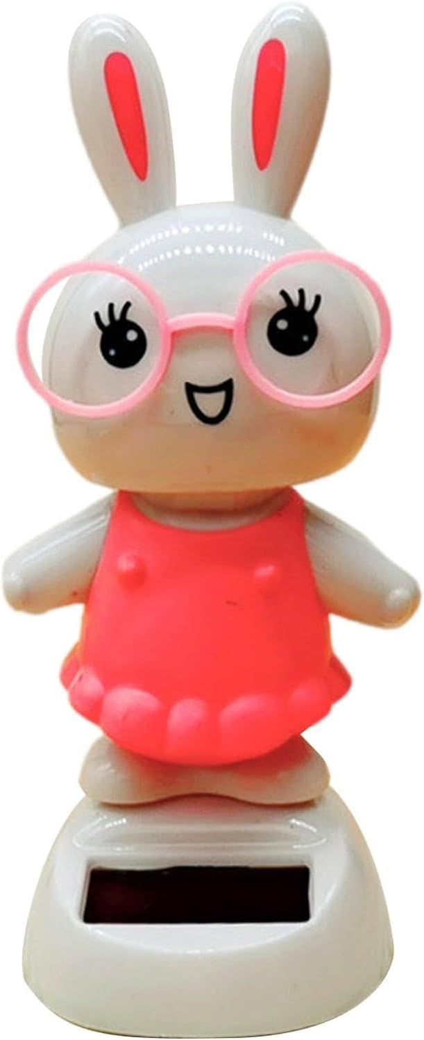 Easter Bunny Decoration, Solar Powered Dancing Rabbit, Car Dashboard Decorations, Versatile Shaking Head Dancing Toy Bunny Figurines for Desk Decor Car Home Gift for Men and Women Learning Education