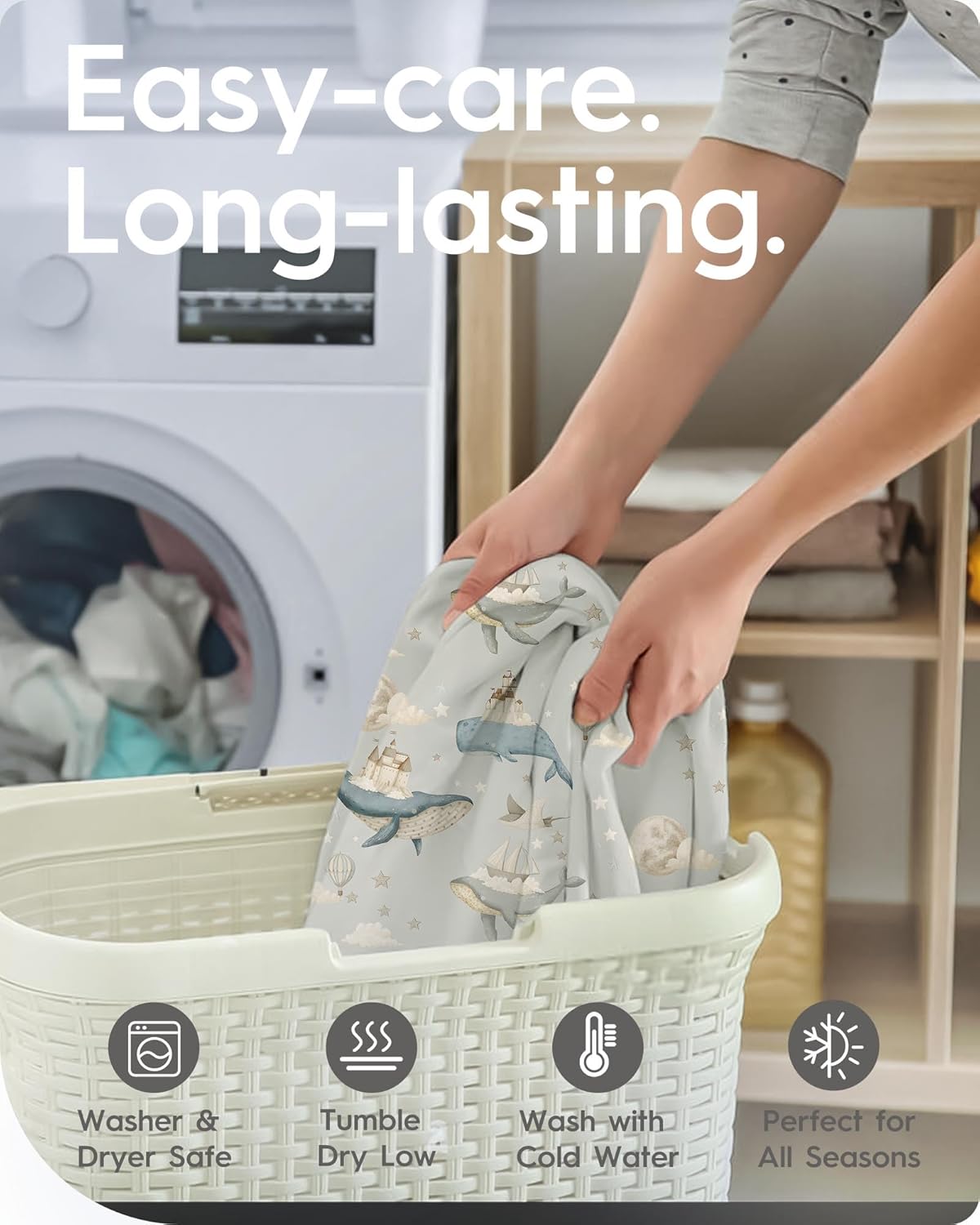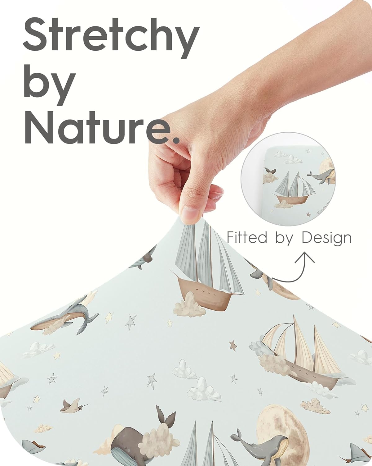 Premium Soft Boho Changing Pad Covers for Girls & Boys - Stretchy Jersey Sheets - Fits Standard Changing Tables - 2 Pack (Whale Dreams)